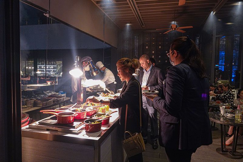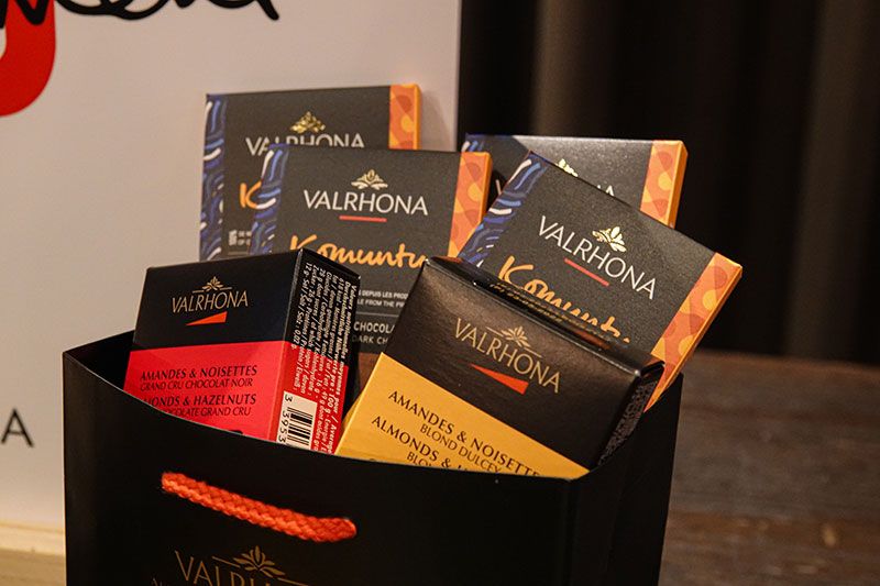 เชฟอั่ม-อิทธิ นิตยาพร Senior Executive Sous Chef ของโรงแรมรับหน้าที่รังสรรค์เมนูอาหารสำหรับงานเฉลิมฉลองครั้งนี้ โดยเชฟอั่มได้ถ่ายทอดรสชาติที่เป็นเอกลักษณ์ของช็อกโกแลต Valrhona ผ่าน 2 เมนูคือ Short Rips Stew สตูว์เนื้อนุ่มที่หมักด้วยผงโกโก้และนำไปซูวี 36 ชั่วโมงก่อนที่จะนำมาทำสตูว์พร้อมกับเติม Valrhona Guanaja ดาร์คช็อกโกแลต 70 % ซึ่งเป็นตัว top ลงไปเคี่ยวในสตูว์เพื่อเพิ่มเนื้อสัมผัสให้มีรสหวานอมขมเสิร์ฟพร้อมกับ Potato Puree ส่วนอีกเมนูคานาเป้ คือ smoke salmon ที่เพิ่มผงโกโก้ตอนรมควัน เพื่อสร้างมิติอันน่าหลงใหลของช็อกโกแลต แลเสิร์ฟขนมชั้นขนมหวานไทย ๆ ที่ทำจากช็อกโกแลตหนึ่งเดียวในโลก