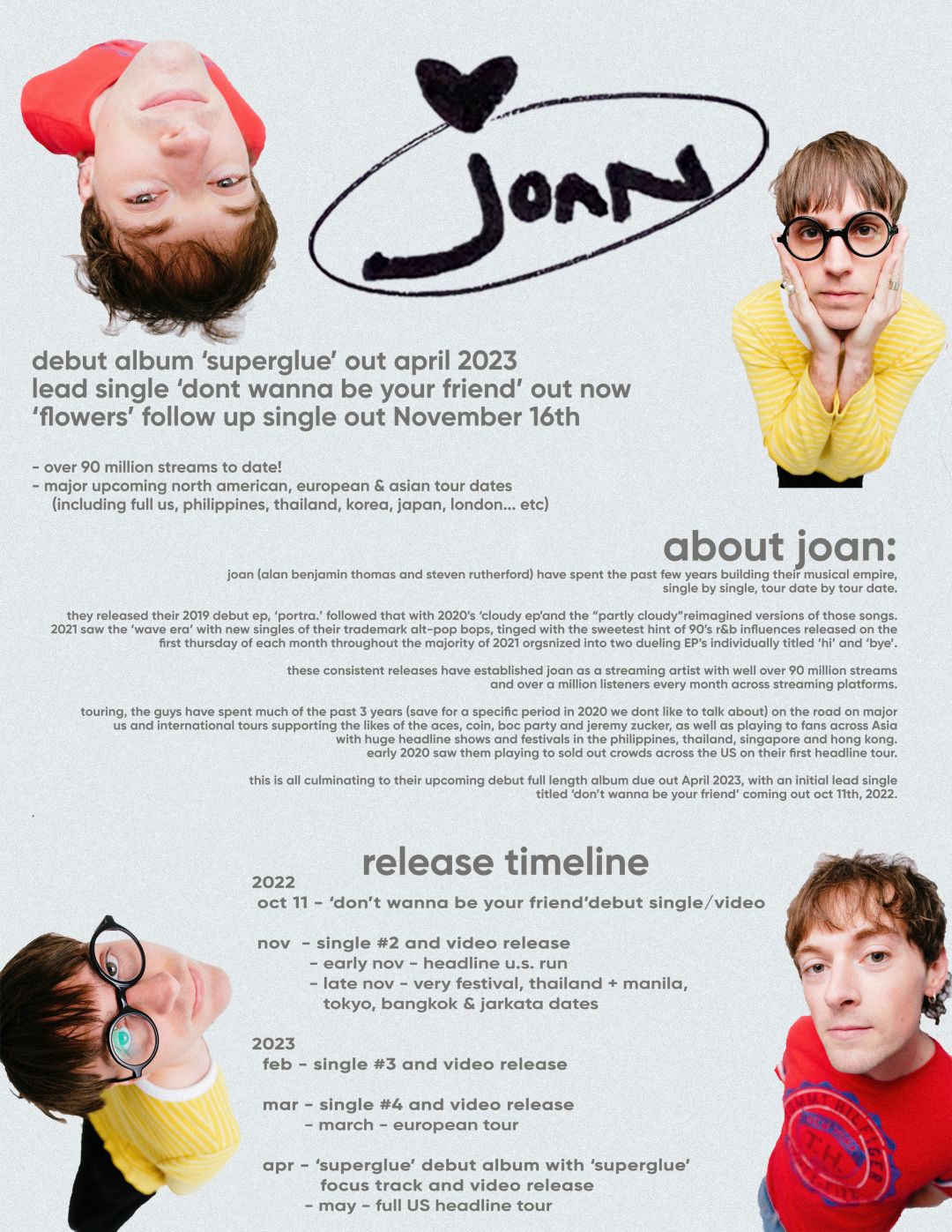 หลังจากปล่อยซิงเกิล“don’t wanna be your Friend”ที่ได้ร่วมเขียนกับ Jon Capeciจากวง Nightlyวันนี้joanก็ได้ปล่อยซิงเกิลใหม่ล่าสุด “flowers”จากอัลบั้มเปิดตัว ‘superglue’ที่ปล่อยในเดือนเมษายนปี 2023 ผ่านค่าย Photo Finish Records โดยเพลงนี้มีการจับคู่กับริฟฟ์กีตาร์อะคูสติกภายใต้เสียงสังเคราะห์ที่ให้ความรู้สึกถึงการนั่งอยู่ในโรงภาพยนต์ พร้อมกับท่วงทำนองที่กินใจเล่าเรื่องที่เต็มไปด้วยอารมณ์และความคิดถึงถึงช่วงเวลาที่ผ่านไปอย่างรวดเร็วและสิ่งที่ผู้คนเติบโตและเปลี่ยนแปลง