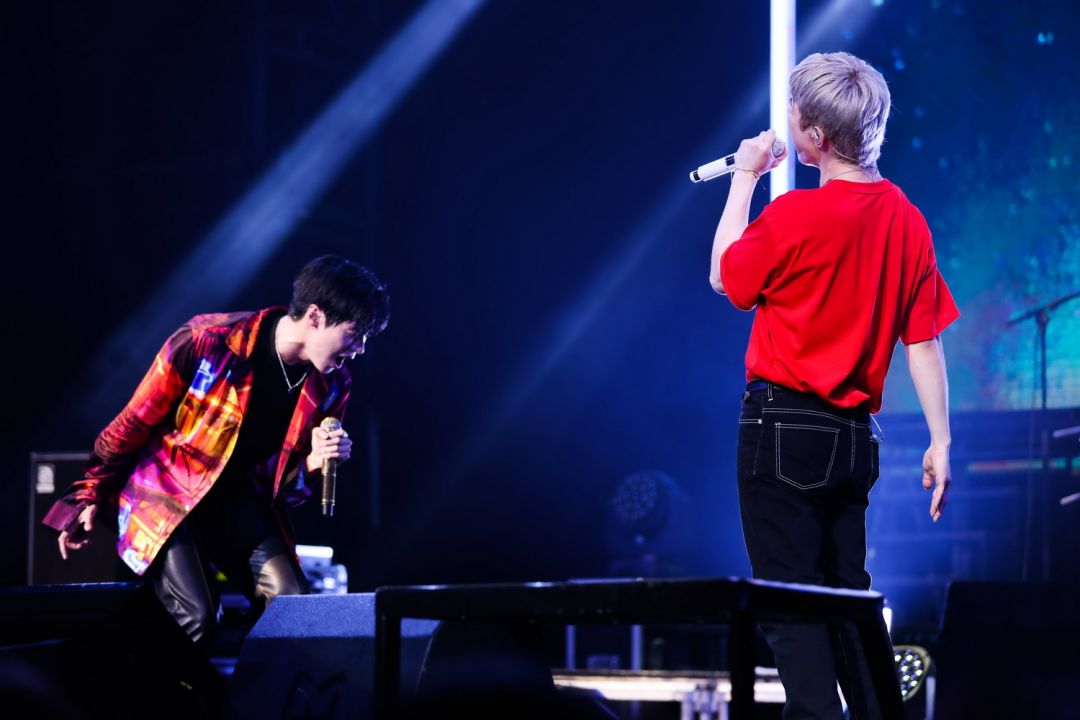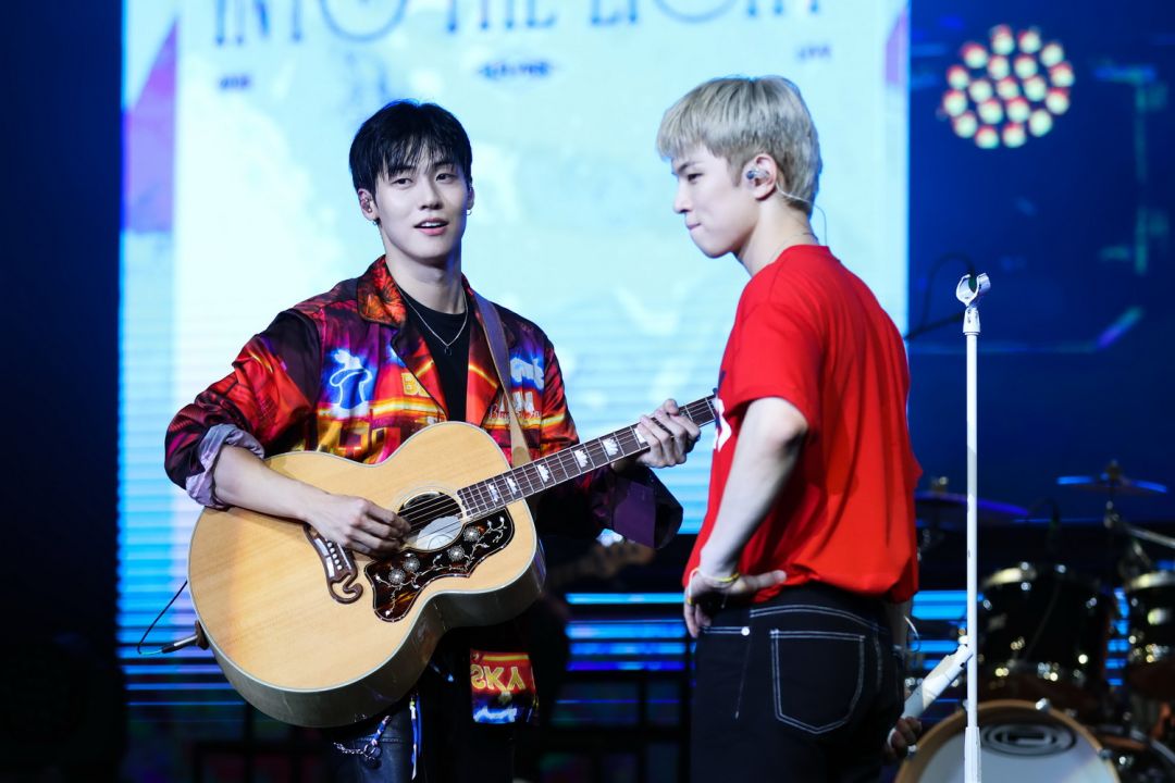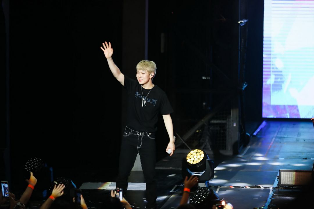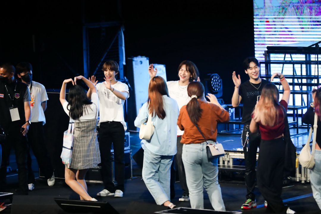 ฮเวซึงพาเข้าช่วงพูดคุย “พวกเรามาถึงเมืองไทยกันเมื่อวานตอนที่ถึงสนามบินสารภาพเลยว่าตอนแรกลืมพอออกมาถึงสนามบินปุ๊บเอ็นเฟียของพวกเราให้การต้อนรับที่รุนแรงทำให้จำสิ่งที่ลืมไปแล้วได้อีกครั้งอา…ผมได้มาเมืองไทยจริงๆแล้วนี่นาว้าว…อบอุ่นเหลือเกินอากาศมันดีต่อสุขภาพคออย่างมากแล้วก็มองขึ้นไปบนฟ้าท้องฟ้าสวยงามมากทำให้อารมณ์ดีคูณสามไปเลยครับสรุปก็คือเมืองไทยดีจริงๆ”ด้านซึงฮยอบขอดูป้ายโปรเจ็คท์จากแฟนๆ “ปกติแล้วเค้าต้องโชว์กันตอนเพลงสุดท้ายไม่ใช่เหรอครับ? ทำไมมันถึงขึ้นมาก่อนล่ะครับ? ผมอยากบอกว่าหลังจากจบEncore Tour แล้วก็กลับมากับInto The Light ตอนที่จบEncore Tour รู้สึกว่ามันขาดอะไรไปก็เลยอยากเป็นกำลังใจให้กับเอ็นเฟียผมกับฮเวซึงไปเดินเล่นกันแล้วก็ได้เห็นภาพตอนกลางคืนมันสวยมากเราก็เลยถ่ายรูปมาให้ได้ดูกันพอพูดถึงท้องฟ้าเมืองไทยแล้วแฟนๆทำโปรเจ็คท์นี้ให้เลยอยากขอบคุณที่เป็นดวงดาวที่สวยงามให้กับพวกเรานะครับทุกครั้งที่มาเล่นสดที่เมืองไทยลืมไม่ลงจริงๆวันนี้มาทำให้เป็นค่ำคืนที่ลืมไม่ลงกันเถอะนะครับ”
