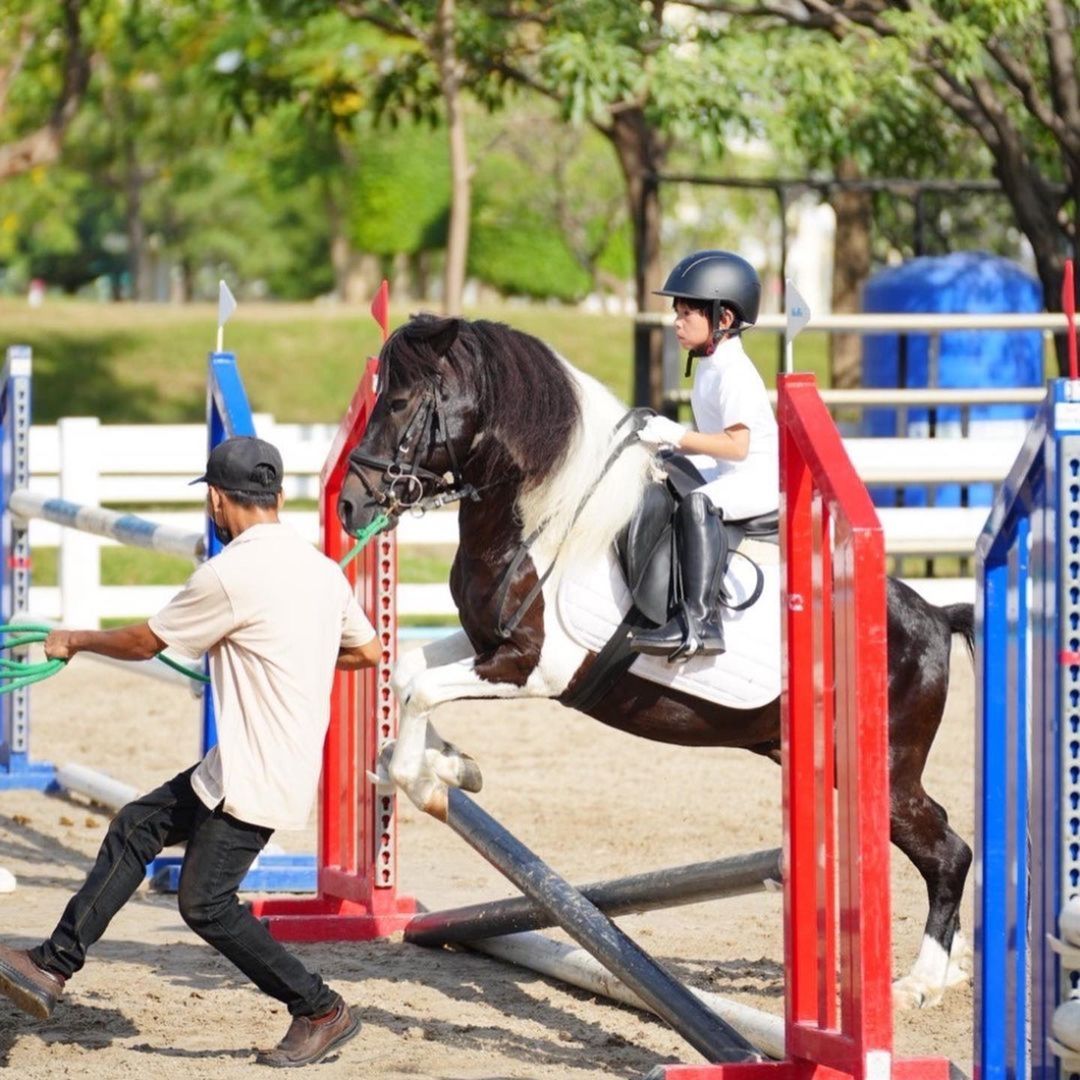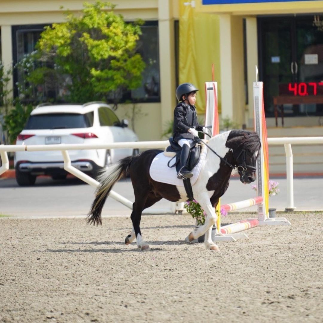 “หลังจากที่เรียนกันมาได้สองสามปี เราก็ลองให้เขาลงสนามแข่งครั้งแรกดู บอกเขาว่าไม่ต้องห่วง ไม่ต้องที่หนึ่งก็ได้ ไม่ต้องคว้าถ้วยก็ได้ แต่ขอให้ทำให้เต็มที่ เรียนรู้จากประสบการณ์ความผิดพลาดและเติบโตเป็นผู้ใหญ่ แล้วเหตุการณ์ตอนนั้นเกิดขึ้นในวันแข่งวันที่สอง ม้าเขาไม่กระโดดข้ามเครื่องเลย มีตึง ๆ ใส่กันนิดหน่อย ต่างคนต่างช็อตฟิว เพราะม้าไม่กระโดดก็ต้องออกจากการแข่งขันเลย ก็พากันตั้งสติ หาสาเหตุคือม้าของเขาชื่อ ซีบร้า เป็นตัวที่ยังไม่ชินกับเรซเท่าไหร่ พอเรซขี่ลงแข่งขันทำให้ซีบร้าดื้อ ไม่ค่อยทำตามสั่ง เราเลยสอนลูกว่าไม่เป็นไร แก้มือใหม่ได้ ไม่ท้อไม่ถอย เขามีแข่งทุก ๆ สามสี่เดือน เป็นลีกของกรมทหารม้าที่สนามเป้าค่ะ ถามว่าจะวางให้เขาลุยวงการนี้เลยมั้ย ณ ตอนนี้เรซเขาชอบเล่นเกมนะ เราแค่อยากให้เขาห่างจากเกมบ้างเพราะสมาธิสั้น ทีนี้ช่วงที่เรียนซ้อมขี่ม้าทุกคนบอกเรซมีแววนะแม่ เราก็เลยลองลุ้นลองสนับสนุนทางนี้ดู และเขาก็ทำให้เราเห็นว่าเขาก็สามารถทำได้จริง ต้องบอกก่อนว่าทุกกีฬาพอมันเริ่มมีการแข่งขันเข้ามา การซ้อมมันจะต้องหนักขึ้น จะไม่สนุกเหมือนเดิม ช่วงนี้เขาเลยจะรู้สึกเหนื่อย ก็เรียนรู้กันไป แต่ทุกอย่างที่เขาทำแพทภูมิใจมากค่ะ ครูที่สนามเขาก็บอกว่าเก่งแล้ว ลงแข่งครั้งแรกได้ขนาดนี้คือเก่งทีเดียว ไม่ตื่นสนามอีกด้วย งานนี้ได้ไปอีกยาวแน่นอนค่ะ”