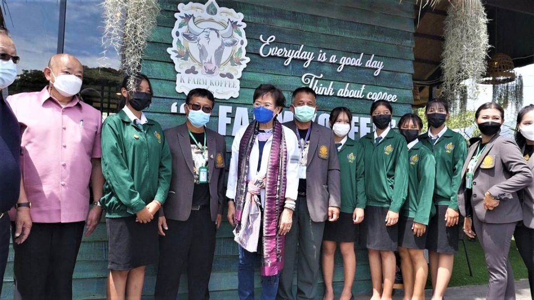 ดร.คุณหญิงกัลยา : เป็นที่น่ายินดีที่มีผู้สนใจเรียนด้านอาชีวะและเกษตรกรรมมากขึ้นเป็นลำดับ เพราะว่าผู้เรียนเห็นชัดว่าเรียนแล้วมีงานทำจริงๆ และสร้างร้ายได้ ได้อย่างน่าพอใจมากตั้งแต่ยังเป็นนักเรียนนักศึกษา อย่างเช่นวันนี้ที่ดิฉันมาจังหวัดบุรีรัมย์ ก็เพื่อมาดูโครงการอบรมนักศึกษาจากวิทยาลัยเกษตรกรรมต่างๆ เพื่อเตรียมตัวเข้าสู่การเป็นผู้ประกอบการรุ่นใหม่ที่มีความรู้ด้านเทคโนโลยีการเกษตร หรือ smart farmers เพื่อเป็นไปตามแผนพัฒนาเศรษฐกิจแห่งชาติ ฉบับที่ 13 ซึ่งประกาศในราชกิจจานุเบกษาไปแล้ว เรามุ่งเน้นให้ผลิตผู้ประกอบการรุ่นใหม่มีความทันสมัย เรียนแล้วนำความรู้ไปเป็นผู้ประกอบการรุ่นใหม่ทันยุคทันสมัยเข้ากับสถานการณ์ของโลก เป็นเกษตรกรที่มีความรู้ความสามารถ สามารถใช้เทคโนโลยีได้ดีเพื่อการผลิตที่ได้มาตรฐานสากล และได้ผลกำไรดีขึ้น เพื่อให้ประเทศไทยสามารถก้าวไปสู่การเป็นแหล่งผลิตอาหารคุณภาพดี สำหรับเลี้ยงชาวโลกได้อย่างน่าภาคภูมิใจ เรามุ่งเน้นให้ผู้กำลังศึกษาได้มีประสบการณ์การผลิตสินค้าได้จริง และทำรายได้ระหว่างกำลังศึกษา เพื่อลดภาระการต้องขอเงินจากผู้ปกครองสำหรับใช้ในการดำรงชีวิตประจำวัน ดังนั้น นักเรียนจึงสามารถผลิตสินค้าการเกษตรขายได้จริง เช่นที่วิทยาลัยเกษตรฯ บุรีรัมย์แห่งนี้นักเรียนและครูสามารถขายต้นไม้ประดับ โดยเฉพาะแคดตัส หรือตะบองเพชรพันธุ์ต่างๆ ได้ดี สามารถส่งไปจำหน่ายในต่างประเทศด้วย ซึ่งทำให้สามารถเรียนรู้ทั้งการผลิตการบำรุงพันธุ์ การคัดเลือกสายพันธุ์ และรู้ด้านการตลาดไปพร้อมๆ กัน ส่วนอีกเรื่องหนึ่งที่ดิฉันมาดูงานในวันนี้คือ การมาเปิดร้านกาแฟที่เป็นผลงานโดยตรงของนักเรียนเกษตรฯ บุรีรัมย์ โดยได้รับความร่วมมือจากบริษัท เค ฟาร์ม คอฟฟี จำกัด เป็นบริษัทเอกชนที่มีจิตสาธารณะ ต้องการสนับสนุนให้นักเรียนสามารถเข้าใจการทำธุรกิจร้านกาแฟที่ชัดเจนเป็นรูปธรรม ช่วยให้สามารถไปเป็นผู้ประกอบการที่แท้จริงได้ในอนาคตเมื่อจบการศึกษาไปแล้ว การทำงานในร้านกาแฟของวิทยาลัยจะช่วยให้เรียนรู้ขั้นตอนต่างๆ ของการทำธุรกิจกาแฟได้ครบวงจร ตั้งแต่เลือกเมล็ดกาแฟ การคั่ว การบด การชง และการตกแต่งร้านการทำแผนการตลาด การทำบัญชี การโฆษณาประชาสัมพันธ์เชิงธุรกิจ เพื่อให้กิจการอยู่รอดและได้กำไร และที่สำคัญคือการเลือกทำเลที่ตั้งร้าน ดังจะเห็นว่าร้านกาแฟนี้อยู่ในเขตวิทยาลัยฯ แต่ตกแต่งบรรยากาศได้น่ารักมาก โดยตั้งอยู่ในนาข้าว และมีการเลี้ยงปลาในนาข้าวไปพร้อมๆ กัน ด้านหลังร้านก็ม