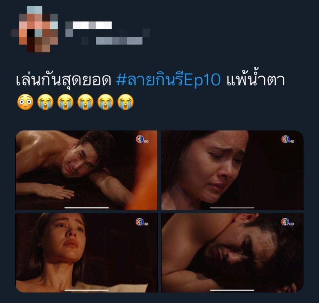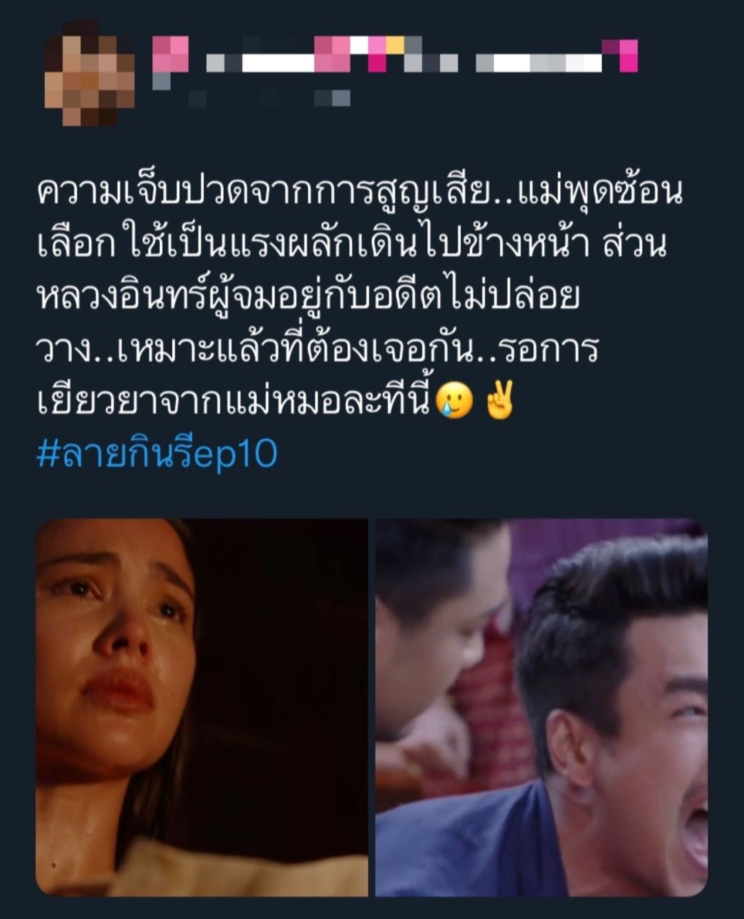 “ลายกินรี” ช่อง 3ปมเก่ายังไม่ทันเคลียร์ปมใหม่เข้ามาแทรกทำให้ลุ้นกันเรื่อย ๆ เท่ากับว่าตอนนี้มีหลายปมมากที่คนดูต้องจับตาลุ้น ไม่ว่าจะเป็น ปมใครคือผู้ฆ่ากปิตันฌอง(เดวิด อัศวนนท์), ปมเรื่องผ้าลายกินรีที่อาจทำให้ในวังต้องลุกเป็นไฟ, ปมความสัมพันธ์จั่น (ก๊อต จิรายุ) กับมาดามคลารา (เดียร์น่า ฟลีโป), ปมเรื่องความเป็นมาของ วีณา (ชาร์เลท วาศิตา แฮเมเนา) และปมล่าสุดที่บีบหัวใจคนดูคือพุดซ้อน (ญาญ่า อุรัสยา)ได้รู้ความจริงเรื่องการตายของ ดวงจันทร์(มิ้นท์ รัญชน์รวี)ภรรยาของ หลวงอินทร์ (ณเดชน์ คูกิมิยะ)ที่หมอโหมด (โอ อนุชิต)พ่อของพุดซ้อนได้นำตัวไปรักษาไกลจากผู้คนเพราะเป็นโรคระบาด แต่หลวงอินทร์รู้แค่ว่าดวงจันทร์เสียชีวิตกลับไม่รู้เลยว่าหมอโหมดเสียสละชีวิตแค่ไหน หลวงอินทร์จึงมีแต่ความโกรธแค้นและอคติกับเรือนหมอโหมด บอกเลยว่าปมนี้ทำให้คนดูอินหนักรอลุ้นว่าจะคลี่คลายยังไง ทั้งนี้“ณเดชน์ คูกิมิยะ” และ “ญาญ่า อุรัสยา”ยังถูกชื่นชมถึงสกิลเล่นดราม่าที่ทำทุกคนสงสารเต็มโซเชียล “พี่ญ่าเล่นดีมาก, ญาญ่าคือนักแสดงอีกคนที่ร้องไห้ไม่ห่วงสวยคือร้องไห้แล้วทำให้คนอินตามได้จริง ๆ สงสารเลย, ณเดชน์นางเล่นดีเว่อร์, อยากจะเอาฉากหมอโหมดรักษาดวงจันทร์ไปให้ออกหลวงดูมากและก็เลิกเกลียดหมอโหมดได้ละ, คนที่น่าสงสารที่สุดคือคนที่ไม่รู้อะไรเลยต่างหากมันก็จะจมกับความคิดของตัวเองไปเรื่อย ๆ, ต้นอีพีอยากหยุมหัวหลวงอินทร์ท้ายอีพีกลับมากสงสารไปอีก บอกออกหลวงเถอะ คงต้องแบบพ่อแสนว่าหาหมอดุ ๆ ที่บังคับออกหลวงได้ในอโยธยามีคนหนึ่งหล่ะชื่อพุดซ้อน คงต้องยืมมือคุณแม่แสร์แล้ว ปมพันกันยุ่งไปหมด จะคลายยังไงนี่อยากดูแล้ว, สงสัยอีกอย่างใครจะมาเฉลยปมว่า หมอโหมด ดวงจันทร์ ที่หายไป 2 คน ตายยังไงในเมื่อ เมียหมอโหมดก็ไม่รู้ แม่พระเอกก็ไม่รู้, เล่นกันสุดยอดแพ้น้ำตา ฯลฯ”
