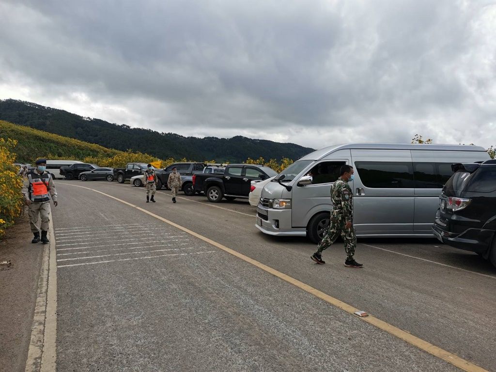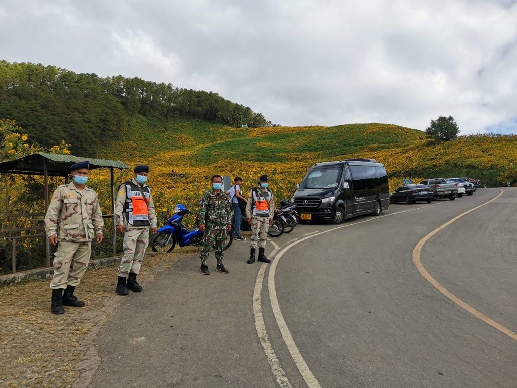 สำหรับในช่วงกลางคืนมีนักท่องเที่ยวพักในทุ่งบัวตองจำนวน 239 คน โดยทางเจ้าหน้าที่วนอุทยานทุ่งบัวตอง ร่วมกับเจ้าหน้าที่ อส.อำเภอขุนยวมที่ 6, หน่วยปฐมพยาบาลทุ่งบัวตอง, เครือข่ายบริการสุขภาพอำเภอขุนยวม, เจ้าหน้าที่ อบต.แม่อูคอ และ อปพร.แม่อูคอ ออกลาดตระเวนตรวจ ดูแลรักษาความปลอดภัยและอำนวยความสะดวกแก่นักท่องเที่ยวที่เข้าพักอย่างใกล้ชิด เพื่อสร้างอบอุ่นใจให้กับนักท่องเที่ยว