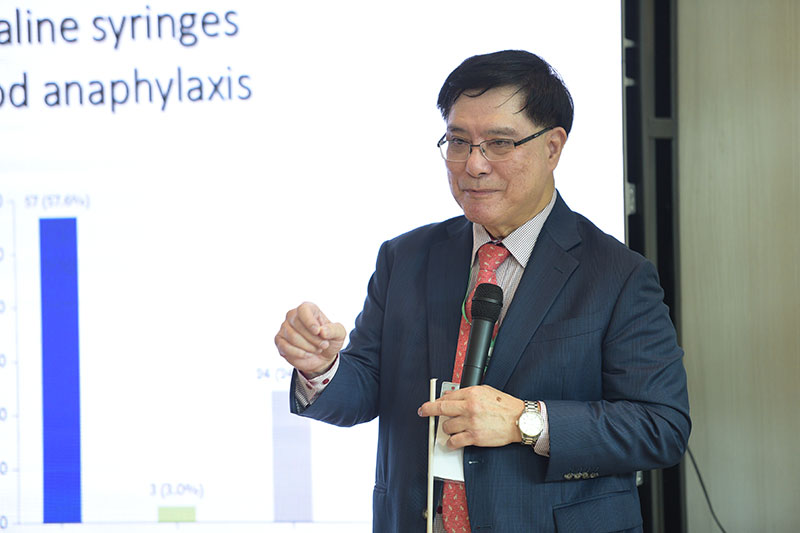 “สำหรับโรคภูมิแพ้อาหารคนไทยบางส่วนอาจจะมองว่าไม่อันตราย ไม่ใช่โรคที่ร้ายแรง หากมีอาการแพ้อาจจะมีเพียงผื่นคันหรืออาการอื่นๆแค่เล็กน้อย ไม่ส่งผลต่อชีวิต แต่ความจริงแล้วหากผู้ป่วยมีการอาการแพ้มากกว่า 2 ระบบ หรือที่เรียกว่าอาการแพ้รุนแรง ซึ่งอาจส่งผลให้ผู้ป่วยอาการหนักถึงขั้นเสียชีวิตได้ ทั้งนี้ทางทีมวิจัยจึงหวังว่าโครงการนี้จะเป็นตัวช่วยให้บุคลากรและผู้ปกครองตระหนักและรู้เท่าทันโรคภูมิแพ้อาหารที่เกิดในโรงเรียน เพื่อป้องกันอันตรายที่อาจส่งผลถึงชีวิต” ศ.เกียรติคุณ นพ.ปกิต กล่าว