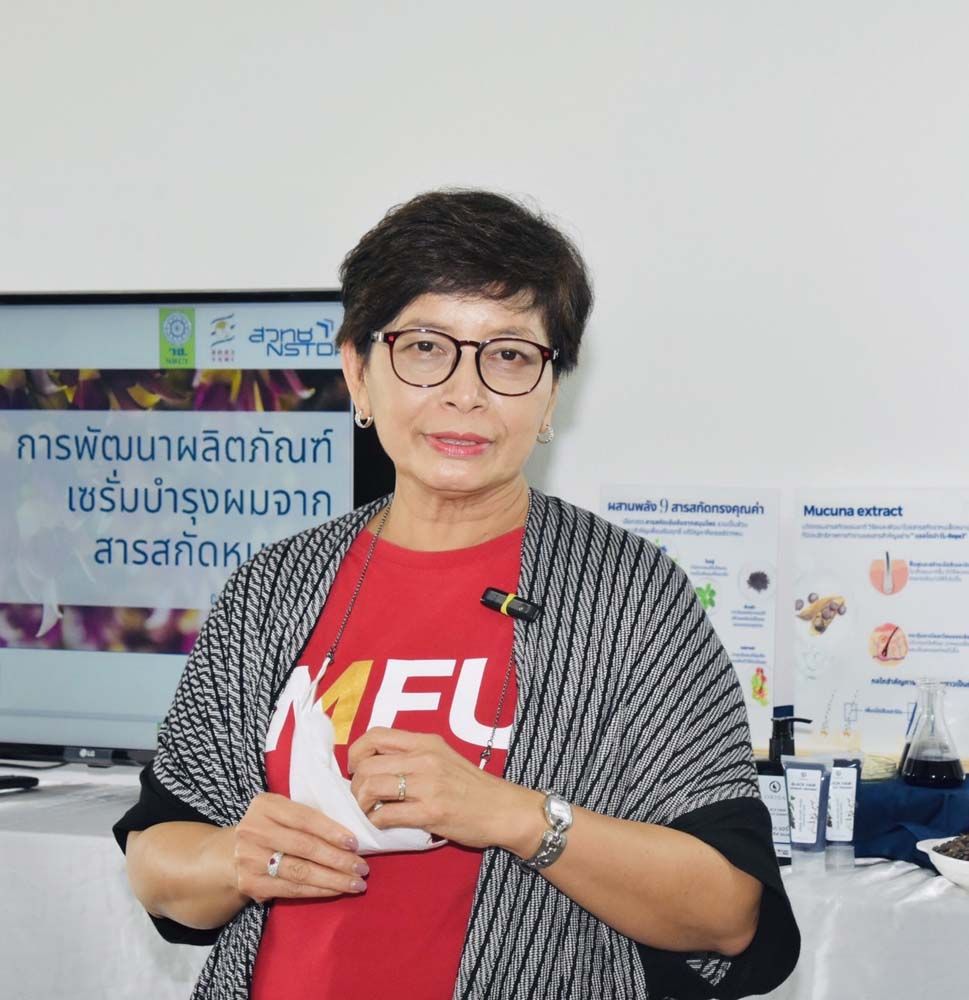 รศ.ดร.ชยาพร วัฒนศิริ อธิการบดี มหาวิทยาลัยแม่ฟ้าหลวง กล่าวว่า ผลิตผลิตภัณฑ์สบู่ล้างหน้าและเซรั่มบำรุงผิวสำหรับผู้ที่เป็นสิว ได้รับทุนสนับสนุนจาก วช. โดยมี ผู้ช่วยศาสตราจารย์ ดร.อำภา จิมไธสง สำนักวิชาวิทยาศาสตร์เครื่องสำอาง มหาวิทยาลัยแม่ฟ้าหลวง คิดค้นและพัฒนาร่วมกับนางสาวอนงค์นุช ต๊ะคำ แห่งบริษัท คอสเม่ อินโนเวชั่น จำกัด พัฒนาผลิตภัณฑ์เกี่ยวกับผลิตภัณฑ์รักษาสิวที่สามารถลดความมันบนใบหน้าได้ ซึ่งในท้องตลาดยังขาดผลิตภัณฑ์รักษาสิวที่เหมาะกับผู้ที่มีผิวแพ้ง่าย ปัจจุบันผู้บริโภคให้ความนิยมกับสมุนไพรและสารสกัดจากธรรมชาติมากขึ้น เพราะมั่นใจเรื่องความปลอดภัย ไม่ทำร้ายผิว จากความนิยมใช้สมุนไพรทีมวิจัยจึงเริ่มศึกษาหาสมุนไพร จนพบสมุนไพรไทยที่หาได้ง่าย คือ ดาวเรืองและขมิ้นชันที่เกษตรกรปลูกในพื้นที่จังหวัดเชียงราย ซึ่งมีฤทธิ์ยับยั้งเชื้อแบคทีเรีย และต้านการอักเสบ นอกจากนี้ยังได้นำน้ำผึ้ง มาเพิ่มความชุ่มชื้นให้ผิว และช่วยลดอาการระคายเคือง