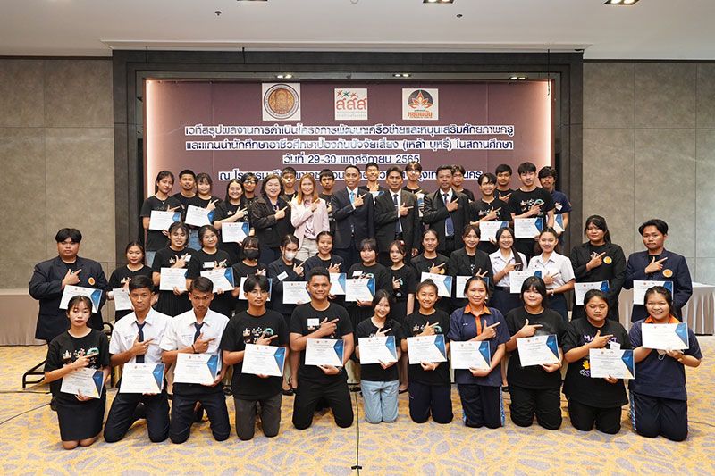 30 พฤศจิกายน 2565 ที่โรงแรม ทีเค พาเลซ แอนด์ คอนเวนชั่น กรุงเทพมหานคร สำนักงานกองทุนสนับสนุนการสร้างเสริมสุขภาพ (สสส.) ร่วมกับ สำนักมาตรฐานการอาชีวศึกษาและวิชาชีพ (สอศ.) มูลนิธิรณรงค์หยุดพนัน จัดเวทีสรุปผลงานการดำเนินโครงการพัฒนาเครือข่ายและหนุนเสริมศักยภาพครูและแกนนำนักศึกษาอาชีวศึกษาป้องกันปัจจัยเสี่ยง (เหล้า บุหรี่) ในสถานศึกษา ภายใต้โครงการพัฒนาเครือข่ายและหนุนเสริมศักยภาพครูและแกนนำนักศึกษาอาชีวศึกษา ป้องกันปัจจัยเสี่ยง (เหล้า บุหรี่) ในสถานศึกษา โดยมีวิทยาลัยเข้าร่วมโครงการกว่า 25 แห่ง