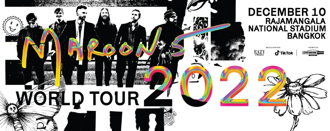 แฟนเพลงชาวไทย ได้เวลานับถอยหลังMAROON 5(มารูนไฟฟ์) เตรียมกลับมาสร้างปรากฏการณ์ความมันในเมืองไทยอีกครั้ง พร้อมจัดเต็มความยิ่งใหญ่กว่าที่เคยกับ MAROON 5 WORLD TOUR 2022(มารูนไฟฟ์เวิลด์ทัวร์2022) ซึ่งจะระเบิดขึ้นในวันเสาร์ที่ 10 ธันวาคมนี้ ที่สนามราชมังคลากีฬาสถานหลังพวกเขาเปิดฉากเอเชียทัวร์ที่สิงคโปร์อย่างอลังการ ก่อนจะเดินทางไปเปิดการแสดงต่อที่ กรุงโซล ประเทศเกาหลีใต้, โตเกียวและโอซาก้า ประเทศญี่ปุ่น, มะนิลา ประเทศฟิลิปปินส์และที่กรุงเทพฯประเทศไทยบ้านเราซึ่งนับเป็นครั้งที่6ของพวกเขาแล้วที่ได้เดินทางมาเปิดการแสดงให้แฟนเพลงชาวไทยได้ชมกัน