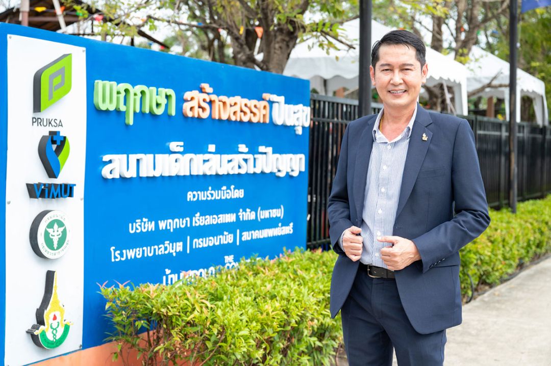 ด้วยเหตุนี้ พฤกษา นำโดย ธีระทองวิไล กรรมการผู้จัดการ บริษัท พฤกษา เรียลเอสเตท จำกัด (มหาชน) เล็งเห็นความสำคัญของการปลูกฝังรากฐาน สร้างความพร้อม สู่การเริ่มต้นชีวิตครอบครัว เพื่อคุณภาพชีวิตที่ดีกว่าอย่างยั่งยืน จัดงานเปิด โครงการพฤกษา สนามเด็กเล่น สร้างปัญญา ต้นแบบสนามเด็กเล่นส่วนกลาง ตามรอย “เล่นตามพ่อ” ของ อาจารย์ดิสสกรกุนธร ประธานมูลนิธิ สนามเด็กเล่น สร้างปัญญา ซึ่งน้อมนำหลักการเลี้ยงดูในหลวงรัชกาลที่ 9 ตามวิถีธรรมชาติของสมเด็จย่า มาเป็นแบบอย่าง ณ โครงการบ้านพฤกษา เทพารักษ์-