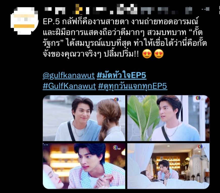 ฟิน 10 ตลบ กับละคร “มัดหัวใจยัยซุปตาร์” ทางช่อง 3 ที่ทำแฟนๆ ติดงอมแงมกับความน่ารักน่าเอ็นดูของพระเอกงานดี “กลัฟ คณาวุฒิ” และ “เจนี่ เทียนโพธิ์สุวรรณ์” ที่นับวันเรตติ้งยิ่งพุ่งขึ้นเรื่อยๆ กระแสตอบรับก็แรงเกินต้านกับแฮชแท็ก #มัดหัวใจEP5 ขึ้นติดเทรนด์ทวิตเตอร์ อันดับ 2 ประเทศไทย ก่อนวิ่งฉิวขึ้นติดเทรนด์ทวิตเตอร์โลก และยอดรวมดูออนไลน์ที่สูงถึง 149,940วิว!