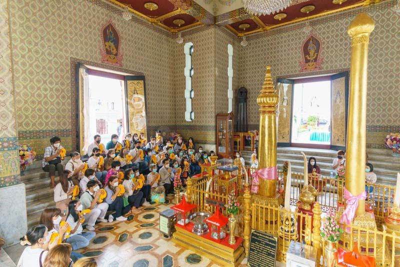 เริ่มต้นทริปอิ่มบุญแบบเอ็กซ์คลูซีฟโดยมีอ.ช้างเป็นผู้นำไหว้พระเสริมดวงตามหลักที่ถูกต้องเพื่อรับบุญรับความโชคดีกลับบ้านซึ่ง อ.ช้าง ขอประเดิมเสริมหลักชัยในชีวิตด้วยการไหว้ขอพรในพิธีถวายเครื่องสักการะที่ศาลหลักเมืองกรุงเทพมหานครเพื่อเสริมสิริมงคลให้ชีวิตประสบความเจริญรุ่งเรืองจากนั้นมุ่งหน้าไปยังวัดพระศรีรัตนศาสดาราม หรือ วัดพระแก้ว พระอารามหลวงชั้นพิเศษชมความงดงามของวัดคู่บ้านคู่เมืองสักการะขอพรพระแก้วมรกตให้ชีวิตไร้อุปสรรค มีแต่ความผาสุก และความเจริญรุ่งเรืองในชีวิตก่อนจะเดินทางต่อไปยังเสาชิงช้า เพื่อชื่นชมสถาปัตยกรรมที่อยู่คู่กรุงรัตนโกสินทร์มาตั้งแต่ปีพ.ศ. 2327 โดยกรมศิลปากรได้ประกาศขึ้นทะเบียนเป็นโบราณสถานสำคัญของชาติ นับเป็นอีกหนึ่งแลนด์มาร์คสำคัญของกรุงเทพฯที่ไม่ควรพลาดจากนั้นรับประทานอาหารกลางวันที่เซี่ยงไฮ้แมนชั่น เยาวราช ซึ่งเลื่องชื่อในเรื่องอาหารจีนที่มีรสชาติเยี่ยมเรียกว่าถูกปากผู้ร่วมทริปทุกท่านเป็นอย่างมากหลังจากอิ่มท้องแล้วไปอิ่มใจกันต่อที่ศาลเจ้าแม่กวนอิม ณ มูลนิธิเทียนฟ้า เพื่อขอพรเจ้าแม่กวนอิมพระโพธิสัตว์อวโลกิเตศวรปางประทานพรประดิษฐานเป็นเทพเจ้าองค์ประธานซึ่งผู้คนนิยมมาขอพรให้ปัดเป่าโรคภัยไข้เจ็บ มีสุขภาพแข็งแรงจากนั้นเดินทางต่อไปยัง ซุ้มประตูเฉลิมพระเกียรติ 6 รอบพระชนมพรรษาเพราะมีความเชื่อว่าซุ้มประตูแห่งนี้มีพลังงานที่ช่วยผลักดันให้ผู้คนได้รับพลังชีวิตและได้รับพรจากฟ้าดินเพื่อเป็นกำลังใจในการดำเนินชีวิตหลังจากนั้นนำทุกท่านเดินทางเข้าสู่ โรงแรม RivaSurya เพื่อพักผ่อนอิริยาบถ ต่อด้วยดินเนอร์สุดพิเศษ ที่ศาลารัตนโกสินทร์ ร่วมรับประทานอาหารพร้อมชมความงามของแม่น้ำเจ้าพระยา ที่มีฉากหลังเป็นพระปรางค์วัดอรุณฯ ท่ามกลางบรรยากาศยามเย็นและแสงสียามค่ำคืน โดยมี อ.ช้างกล่าวปิดท้ายงานพร้อมเคล็ดลับการไหว้สิ่งศักดิ์สิทธิ์เสริมดวงในปี 2566 เรียกว่าเป็นทริปที่อิ่มบุญอิ่มใจและอิ่มท้องกันทั่วหน้า