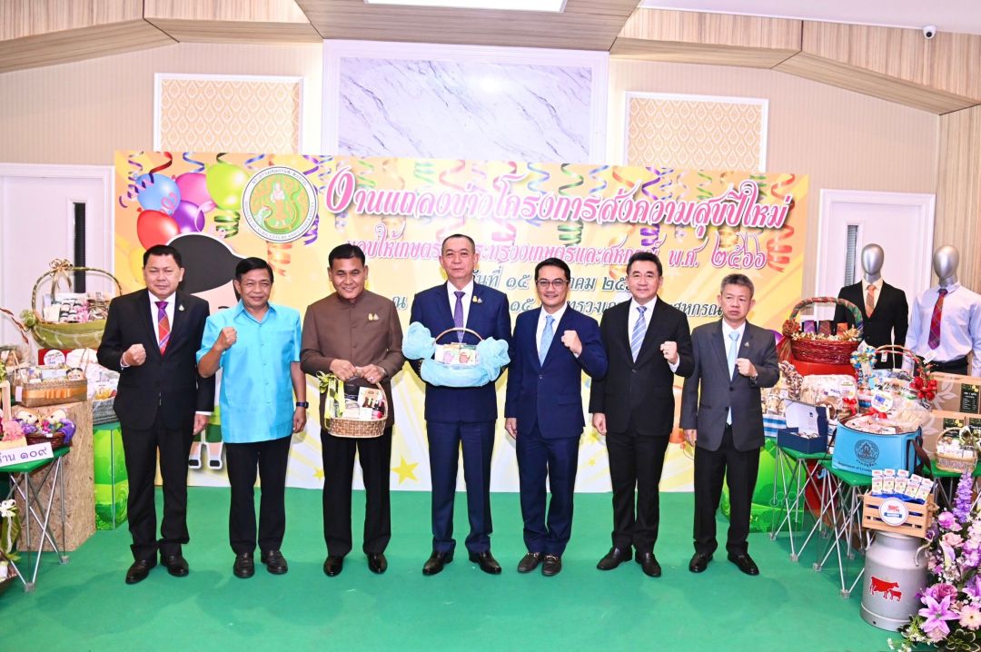 นายเฉลิมชัย ศรีอ่อน รัฐมนตรีว่าการกระทรวงเกษตรและสหกรณ์เป็นประธานแถลงข่าว “โครงการส่งความสุขปีใหม่ มอบให้เกษตรกร กระทรวงเกษตรและสหกรณ์ ปี พ.ศ. 2566” โดยมีนายสุนทรปานแสงทองรัฐมนตรีช่วยว่าการกระทรวงเกษตรและสหกรณ์นายอลงกรณ์ พลบุตร ที่ปรึกษารัฐมนตรีว่าการกระทรวงเกษตรและสหกรณ์ นายธนา ชีรวินิจ เลขานุการรัฐมนตรีว่าการกระทรวงเกษตรและสหกรณ์นายนราพัฒน์แก้วทองผู้ช่วยรัฐมนตรีประจำกระทรวงเกษตรและสหกรณ์นายประยูร อินสกุล ปลัดกระทรวงเกษตรและสหกรณ์ และผู้บริหารกระทรวงเกษตรและสหกรณ์ เข้าร่วม ณ ห้องประชุมกระทรวงเกษตรและสหกรณ์