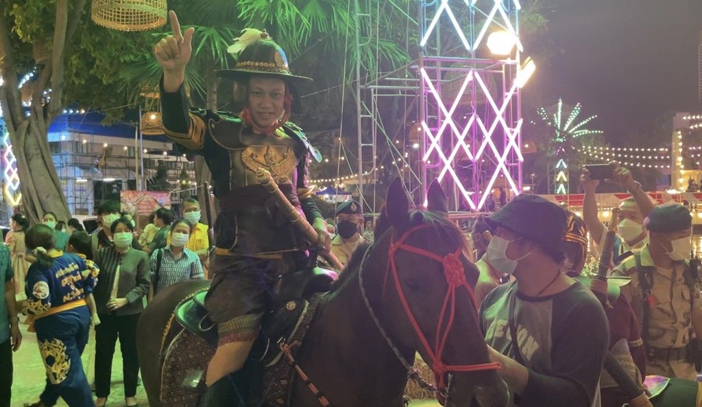 โดยหลังจากที่นายอำเภอบางใหญ่ ทำการสักการะบูชาพระบรมราชานุสาวรีย์สมเด็จพระเจ้าตากสินมหาราชเสร็จสิ้น จึงลงเรือเพื่อข้ามฟากไปขี่ม้าเพื่อทำการเปิดงาน โดยมีนายสมพล สุระสัจจะ ปลัดอำเภอหัวหน้าฝ่ายความมั่นคง เป็นฝีพาย ระหว่างที่กำลังพายเรือใกล้ถึงฝั่งได้เกิดเหตุการณ์ไม่คาดฝันขึ้นเรือเกิดโคลงเคลงจึงทำให้นายอำเภอและปลัดอำเภอตกลงไปในน้ำทั้งคู่ โชคดีที่ไม่มีใครได้รับบาดเจ็บและเป็นอันตรายแต่อย่างใดหลังจากขึ้นจากน้ำ นายอำเภอได้ทำการกล่าวเปิดงานตามกำหนดการ ทั้งที่ชุดยังเปียกชุ่มด้วยสีหน้ายิ้มแย้ม โดยมีเสียงชาวบ้านตะโกนถามนายอำเภอด้วยความเป็นห่วงอยู่ตลอดเวลา
