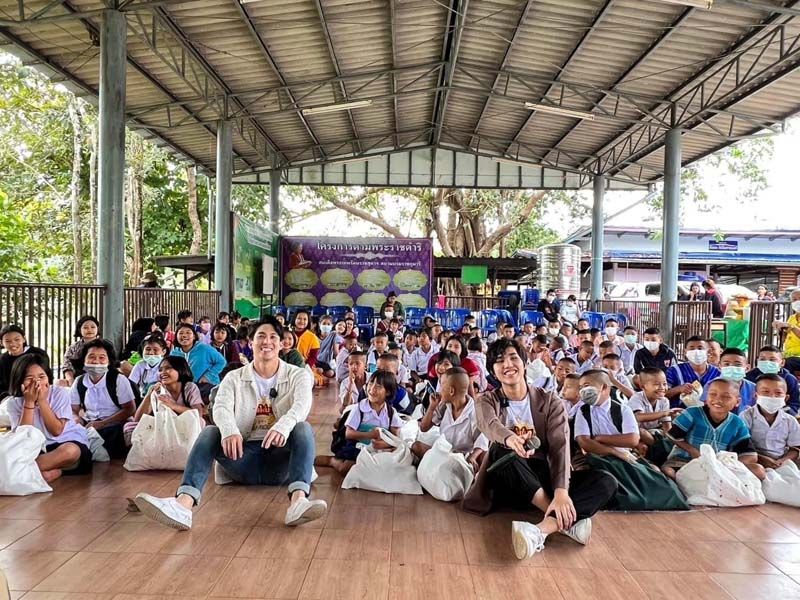 ‘แม็บ-วรรธนะ,ล็อตเต้-ภูกฤษ,ชะเอม-อลงกรณ์’ แท็กทีมบริจาคสิ่งของ พร้อมเลี้ยงอาหารกลางวันเด็ก