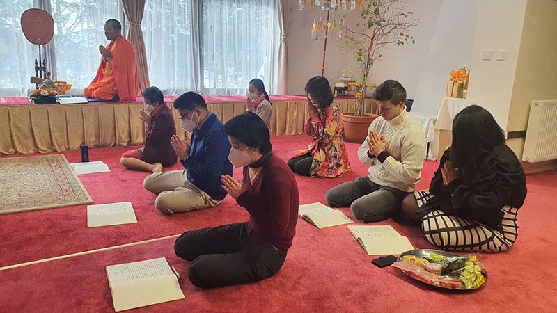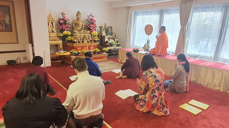 สถานเอกอัครราชทูตไทย ณ กรุงกาฐมาณฑุ ประเทศเนปาล ร่วมกับ พระศรีโพธิวิเทศ เจ้าอาวาสวัดไทยลุมพินี นิมนต์พระสงฆ์นานาชาติเจริญพระพุทธมนต์และเจริญจิตตภาวนาเพื่อถวายพระพร แด่สมเด็จพระเจ้าลูกเธอ เจ้าฟ้าพัชรกิติยาภา นเรนทิราเทพยวดี กรมหลวงราชสาริณีสิริพัชร มหาวัชรราชธิดา.012