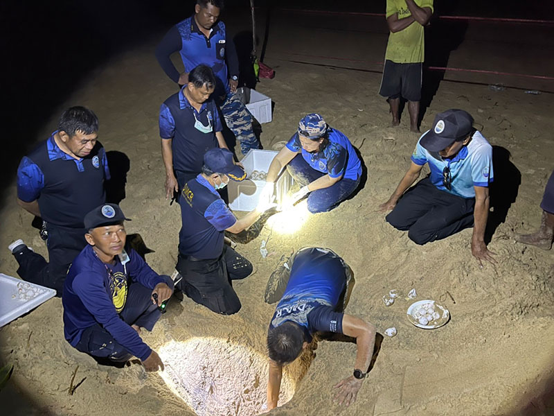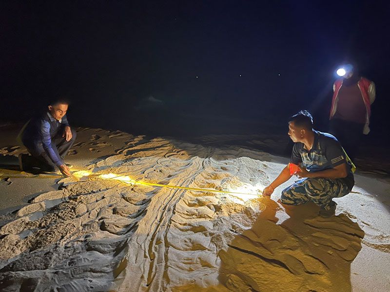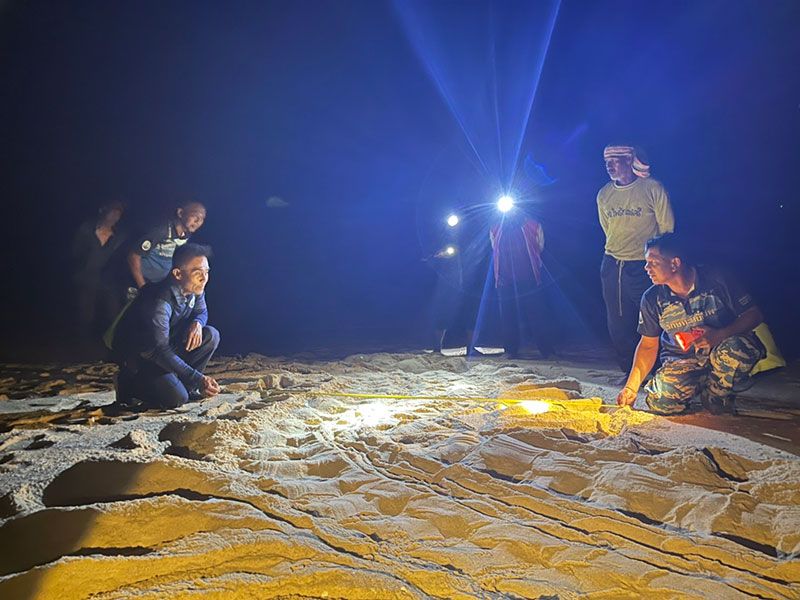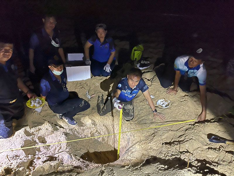 ว่าพบร่องรอยการขึ้นมาวางไข่ของเต่าทะเล ที่ชายหาดเขาปิหลาย ต.โคกกลอย อ.ตะกั่วทุ่ง จ.พังงา พิกัด 420933 E 909552 N (ห่างจากคอกกั้นฟักไข่เต่ามะเฟือง ไปทางทิศเหนือ 2,132 ม.) จึงเข้าไปทำการตรวจสอบ ร่องรอยการขึ้นมาวางไข่ของเต่าวัดร่องรอยขนาดพายหน้า จากซ้ายไปขวา 220 ซม. ขนาดอก 110 ซม. ร่วมกันขุดค้นหาตั้งแต่เเช้าจนถึงค่ำขุดไม่พบไข่เต่าแต่อย่างใด จึงยุติการขุดค้นหา ทำการกั้นเขตพื้นที่ไม่ให้มีการรบกวน จนวันที่ 17 ธ.ค. 65 จึงเข้าขุดค้นหากันต่อ