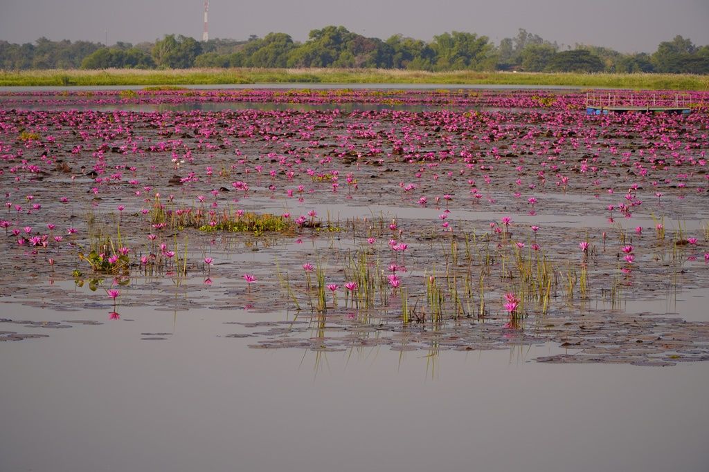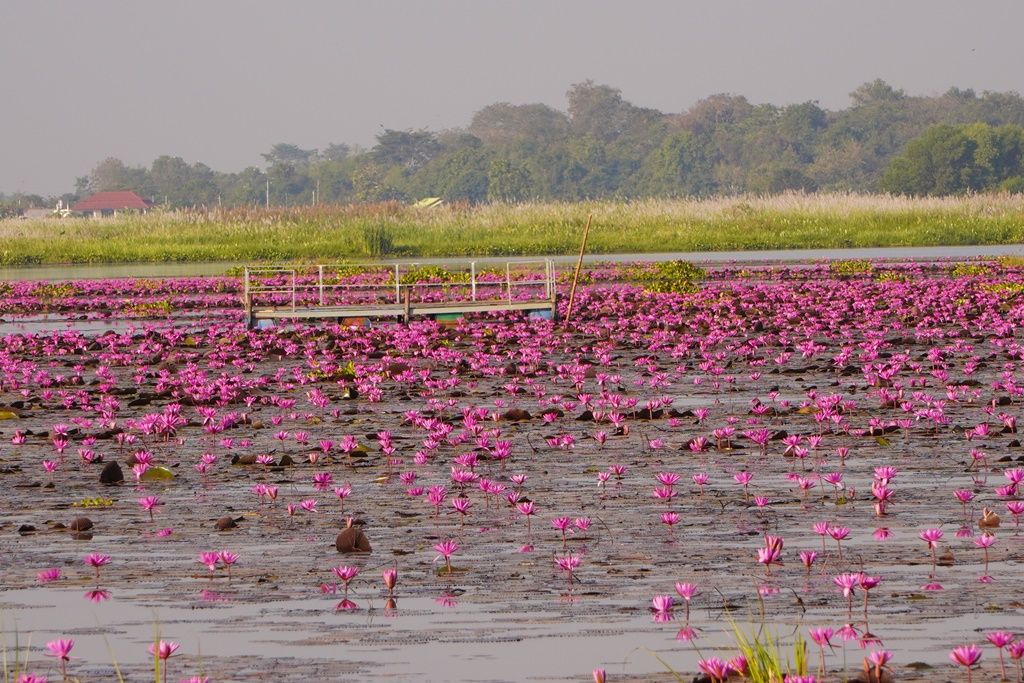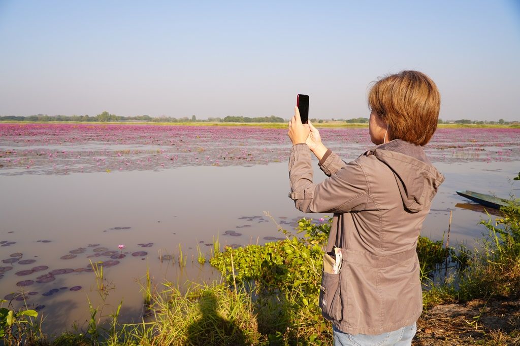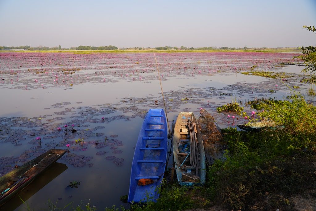 ‘บัวแดง’วังบัวแดงหนองคายบานรับลมหนาวแล้ว รอรับ นทท.ล่องเรือชมความงาม