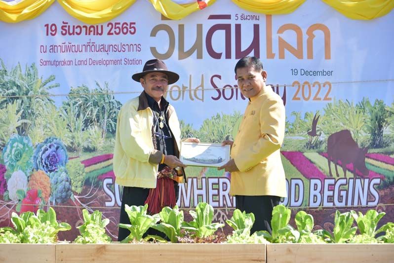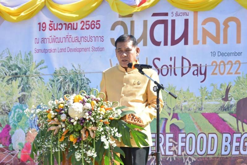 19 ธันวาคม 2565 นายสุนทร ปานแสงทอง รัฐมนตรีช่วยว่าการกระทรวงเกษตรและสหกรณ์ เป็นประธานเปิดงานวันดินโลก จังหวัดสมุทรปราการ ประจำปี 2565 ภายใต้หัวข้อ “Soils, where food begins : อาหาร ก่อกำเนิด เกิดจากดิน” เพื่อเทิดพระเกียรติพระบาทสมเด็จพระบรมชนกาธิเบศร มหาภูมิพลอดุลยเดชมหาราช บรมนาถบพิตร “นักวิทยาศาสตร์ดินเพื่อมนุษยธรรม” ด้านการอนุรักษ์ทรัพยากรดิน และสร้างความตระหนักในการสร้างสุขภาพดินที่ดี ส่งผลต่อความมั่นคง และปลอดภัยทางอาหารและสิ่งแวดล้อมที่ดี โดยมี นายปราโมทย์ ยาใจ อธิบดีกรมพัฒนาที่ดิน นายศุภมิตร ชิณศรี ผู้ว่าราชการจังหวัดสมุทรปราการ หัวหน้าส่วนราชการ ข้าราชการ และหน่วยงานภาคีที่เกี่ยวข้อง ร่วมให้การต้อนรับ ณ สถานีพัฒนาที่ดินสมุทรปราการ อำเภอบางพลี จังหวัดสมุทรปราการ