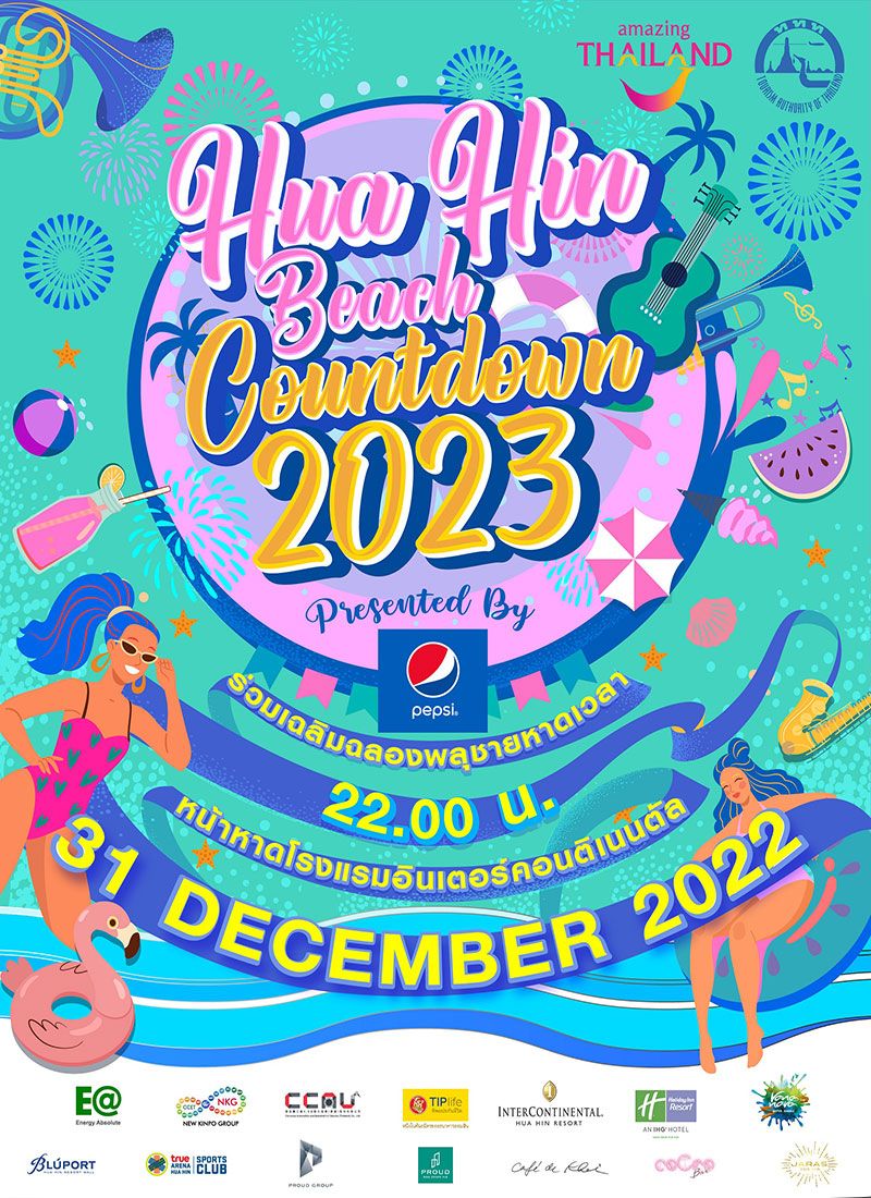 กลุ่มบริษัท พราว ร่วมกับ บริษัท ซันโทรี่ เป๊ปซี่โค เบเวอเรจ (ประเทศไทย) จำกัด, บริษัท พลังงานบริสุทธิ์ จำกัด (มหาชน), การท่องเที่ยวแห่งประเทศไทย, บริษัท แคล-คอมพ์ อีเล็คโทรนิคส์ (ประเทศไทย) จำกัด (มหาชน), บริษัท แคล-คอมพ์ ออโตเมชั่น แอนด์ อินดัส เทรียล 4.0 เซอร์วิส (ประเทศไทย), บริษัท ทิพยประกันชีวิต จำกัด (มหาชน) และโรงแรมอินเตอร์คอนติเนนตัล หัวหิน รีสอร์ท ชวนคุณ ครอบครัว และแก๊งค์เพื่อน ชวนเติมความสดชื่น ฉลองเทศกาลแห่งความสุขส่งท้ายปีในงาน “Hua Hin Countdown 2023 presented by Pepsi” จุดแลนด์มาร์คเค้าท์ดาวน์ริมทะเลยิ่งใหญ่สุดในเมืองหัวหิน พบกับพลุดอกไม้ไฟตระการตาสีสันสดใส ยิงต่อเนื่องกว่า 10 นาที เหนือท้องทะเล และบนท้องฟ้าถึง 2,022 ลูก ประกอบแสง สี เสียง ในวันเสาร์ที่ 31 ธันวาคม 2565 เริ่มเข้างานได้ เวลา 18.00 น. เป็นต้นไป เข้าชมพลุฟรี !!! (โชว์พลุเริ่มเวลา 22.00 น.) ณ ริมหาดหน้าโรงแรมอินเตอร์คอนติเนนตัล หัวหิน รีสอร์ท
