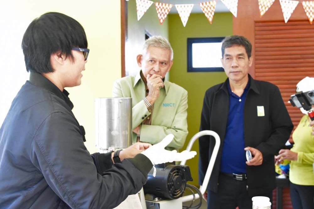 นายธานินทร์ ผะเอม ผู้ทรงคุณวุฒิ วช. กล่าวว่า จะเห็นได้ว่าโครงการเพิ่มศักยภาพการผลิตและยกระดับรายได้ชุมชนด้วยนวัตกรรมเครื่องสีเปลือกแมคคาเดเมีย สอดคล้องกับศาสตร์พระราชา วช.มีส่วนช่วยสนับสนุนนวัตกรรมและเทคโนโลยีให้กับกลุ่มเกษตรกรสร้างรายได้ให้กับชุมชนไปสู่ชุมชน Zero Waste การหมุนเวียนทรัพยากรกลับมาใช้ใหม่ให้เกิดประโยชน์สูงสุดชุมชนเข้มแข็งอย่างยั่งยืนอย่างแท้จริง