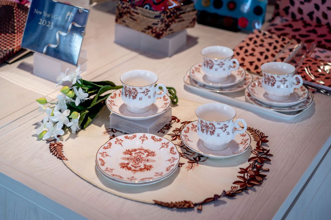 พิพิธภัณฑ์ผ้าฯ ชวนมาเลือกสรร 14 เซตของขวัญปีใหม่ ที่ออกแบบอย่างพิถิพิถันเพื่อให้สามารถใช้ได้ในชีวิตประจำวัน และสามารถเลือกซื้อเป็นของขวัญสำหรับเทศกาลปีใหม่ที่กำลังจะมาถึงได้อย่างสมบูรณ์แบบ อาทิ ชุดของขวัญปีใหม่ Set S จากคอลเลคชั่นนิทรรศการ สิริราชพัสตราบรมราชินีนาถ ที่ได้รับแรงบันดาลใจในการออกแบบมาจากพระพัชนี (พัด) และพระกลด (ร่ม) ในสมเด็จพระนางเจ้าสิริกิติ์ พระบรมราชินีนาถ พระบรมราชชนนีพันปีหลวง ประกอบด้วย แฟ้มใส่เอกสาร สมุดจด ผ้าเช็ดแว่น สมุดฉีก กระเป๋าพลาสติกใส่อุปกรณ์เครื่องเขียน หรือ ชุดของขวัญเซรามิก ที่ลวดลายได้แรงบันดาลใจจากฉลองพระองค์ในสมเด็จพระบรมราชชนนีพันปีหลวง โดย Set Small ประกอบด้วย แก้วกาแฟ จานรองแก้วกาแฟ และจานแบน อย่างละ 2 ใบ และ Set Large ประกอบด้วยถาดรอง 1 ใบ แก้วกาแฟ จานรองแก้วกาแฟ และจานแบน อย่างละ 2 ใบ