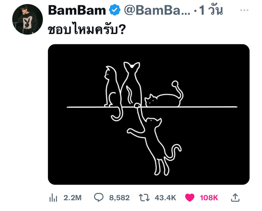 ‘แบมแบม’ดีไซน์เสื้อยืดรุ่น‘MySafePlace’ได้แรงบันดาลใจจากแมวสุดรักสี่ตัว