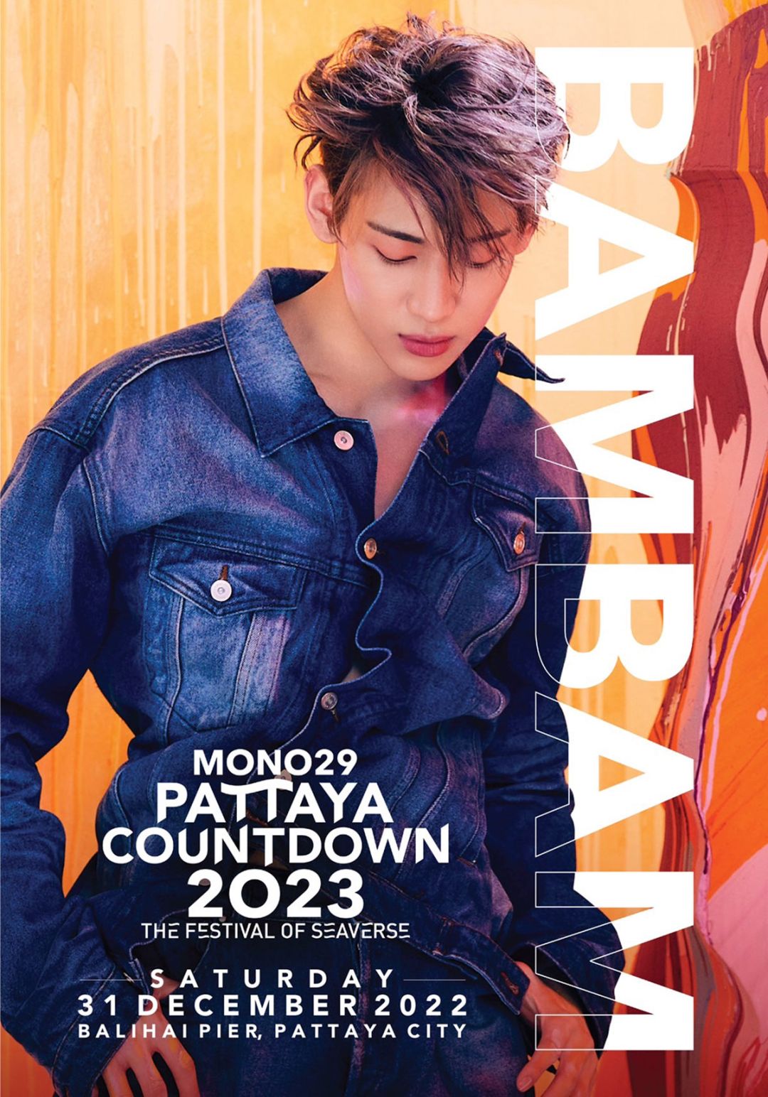 ซึ่ง แบมแบม เผยว่า “สวัสดีครับผมแบมแบมนะครับ วันนี้ผมมีข่าวดีมาบอกทุกคนวันที่ 31 ธันวาคมนี้ เราจะได้พบกันที่งาน “MONO 29 PATTAYA COUNTDOWN 2023” แหลมบาลีฮาย พัทยา ซึ่งปีนี้ผมมีพี่ที่ค่ายฯ “พี่ซอนมี” กับ “พี่ซานดาร่า ปาร์ค” มาร่วมคอนเสิร์ตด้วย ส่วนข่าวดีข่าวที่สองคือ ผมได้ออกแบบทีเชิร์ตสุดเอ็กซ์คลูซีฟเพื่อทุกคน ซึ่งเป็นเสื้อที่สามารถใส่ได้ทุกที่ ทุกเวลา และทุกสถานการณ์ ผมตั้งใจดีไซน์เสื้อตัวนี้มาก หวังว่าทุกคนจะชอบ อยากให้สนับสนุนเสื้อยืดของผมด้วยนะครับ ยังไงเดี๋ยวเราเจอกันในเร็วๆ นี้นะครับ”