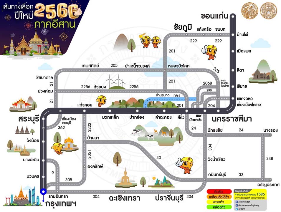 ‘กรมทางหลวง’ แนะนำเส้นทางเลือกจากกรุงเทพฯสู่ภูมิภาคต่าง ๆ ช่วงเทศกาลปีใหม่ 2566 เพื่อให้ผู้ใช้ทางได้รับความสะดวกรวดเร็วในการเดินทาง พร้อมรณรงค์ ‘ขับไม่ดื่มดื่มไม่ขับ’