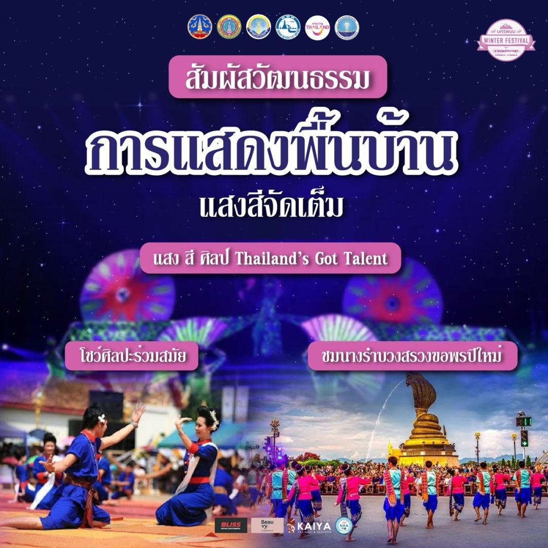 “NAKHOM PHANOM WINTER FESTIVAL 2023 ตอน สายลมแห่งความสุข” ในวันที่ 29 – 30 ธันวาคม 2565 เวลา 16.00 – 23.00น. และ วันที่ 31 ธันวาคม 2565 เวลา 16.00 – 01.00 น. ณ เวทีหอนาฬิกาเวียดนามอนุสรณ์ ถนนสุนทรวิจิตร ริมฝั่งแม่น้ำโขง อำเภอเมือง จังหวัดนครพนม