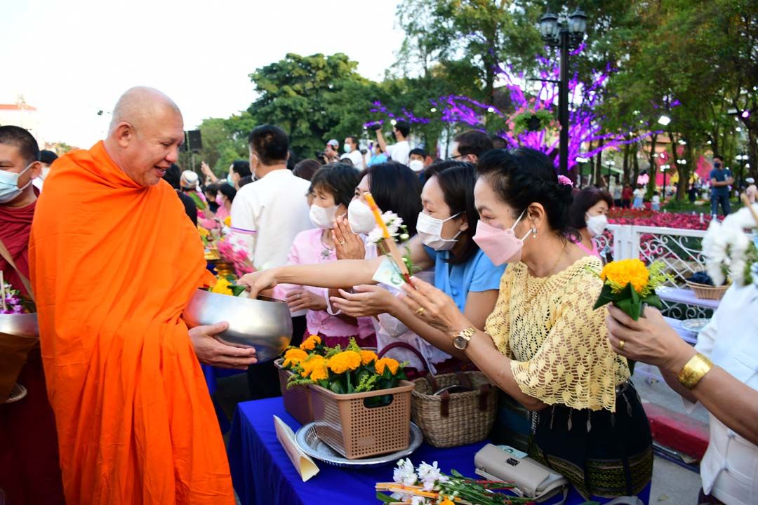 เมื่อวันที่ 30 ธันวาคม 2565 นายพุฒิพงศ์ ศิริมาตย์ ผู้ว่าราชการจังหวัดเชียงราย นายวันชัย จงสุทธานามณี นายกเทศมนตรีนครเชียงราย พร้อมด้วยคณะผู้บริหารเทศบาลนครเชียงราย นางรัตนา จงสุทธานามณี นายกสมาคมกีฬาแห่งจังหวัดเชียงราย และ ผู้ริเริ่มจัดงาน และผู้ออกแบบ เชียงรายดอกไม้งาม พร้อมด้วยส่วนราชการ นักท่องเที่ยว รวมทั้งชาวเชียงราย ประกอบพิธีทำบุญตักบาตรดอกไม้ หนึ่งเดียวในล้านนา จัดขึ้นที่ สวนตุงและโคม เทศบาลนครเชียงราย โดยได้นิมนต์พระสงฆ์ ที่เป็นที่เคารพนับถือของชาวเชียงราย และนักท่องเที่ยว นำออกรับบิณฑบาตร รวมพระสงฆ์และสามเณร 76 รูป