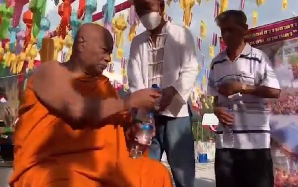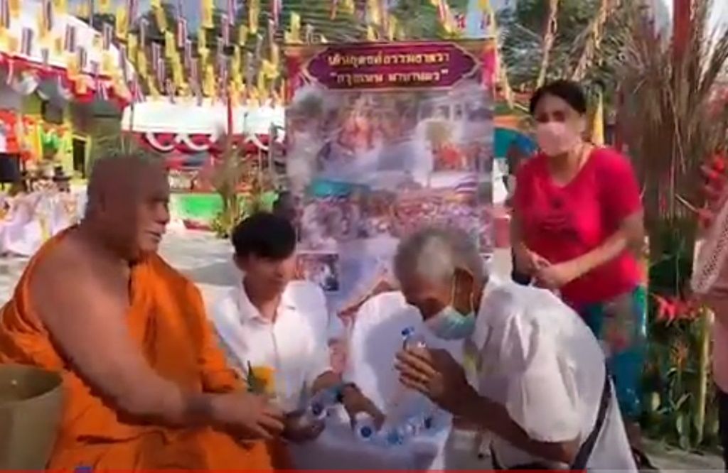 คนเมืองคอนแห่ตักบาตรวันปีใหม่ รับน้ำมนต์เหล็กไหล ‘วัดเขาพระทอง’