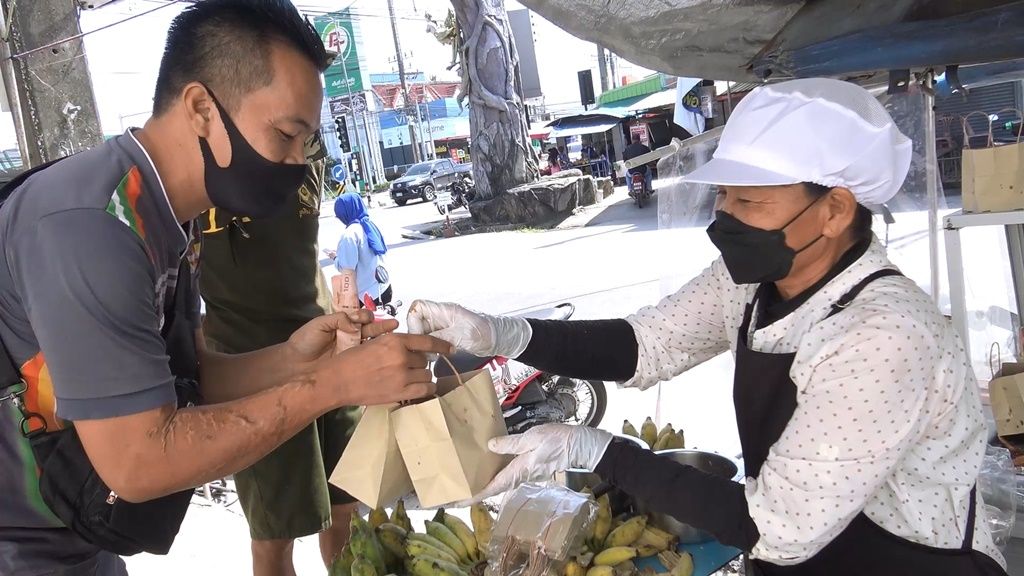 ‘กล้วยทอดป้าอรเจ้าอร่อย’หน้าสวนสัตว์สงขลาแจกให้ลูกค้ากินฟรีรับปีใหม่