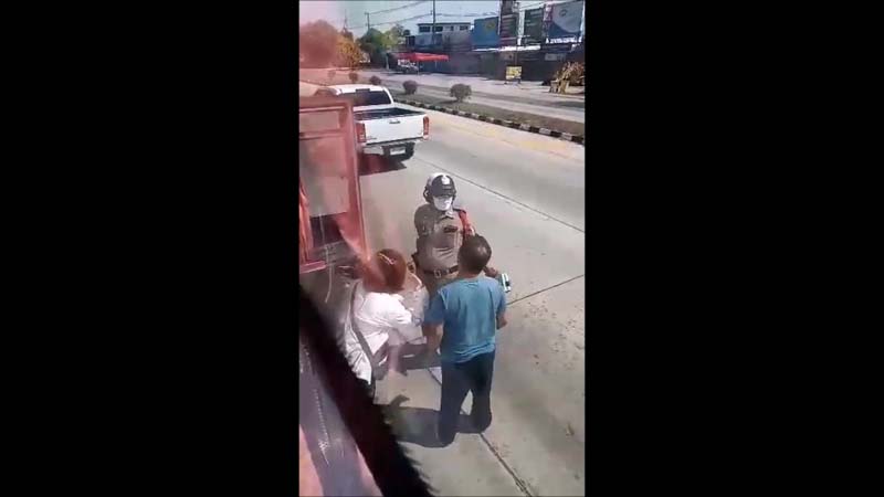 โดยคนขับพูดลิ้นเร็วไปหน่อย จับใจความได้ว่า ให้รีบภรรยาไปเสียค่าปรับ และโวยวายกับเจ้าหน้าที่ตำรวจจราจรว่า เป็นฮ่ายกะด้อกะเนี่ย แลนรถมาหลายสิบปีแล้ว ไม่ได้ทำอะไรซะหน่อย เจ้าเป็นตำรวจได้อย่างไรหัวหน้า ตำรวจก็ถามคนขับมีอาการคึกคักแบบนี้ห่วงเรื่องความปลอดภัยผู้โดยสารและบอกว่าผมทำตามกฎหมายตามนายสั่งช่วง 7 วันอันตราย โต้เถียงกันสักพักตำรวจจราจรก็ถอดเสื้อกั๊กสะท้อนแสงเดินไปหลังรถ โดยคนขับรถโดยสาธารณะและภรรยาก็เดินตามไป ในคลิปก็จบแค่นั้น