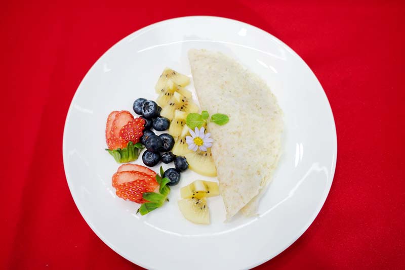 ณัฐมนฑน์ จิรวัฒนาวงษ์ นักกำหนดอาหารวิชาชีพโรงพยาบาลวิมุต ได้แนะนำเมนูอร่อย อุดมไปด้วยคุณค่าทางโภชนาการ และทำได้ง่ายมาก นั่นคือ เครปไข่ขาว เสิร์ฟพร้อมโยเกิร์ตและมิกซ์เบอร์รี่เมนูแสนอร่อยสำหรับคนทุกเพศทุกวัย เป็นเมนูคลีนเพื่อสุขภาพให้พลังงานเพียง 110 แคลอรี ต่อ 1 จาน เหมาะสำหรับการเป็นของว่างแสนอร่อยสำหรับคนรักเครป ที่ชอบดูแลสุขภาพ