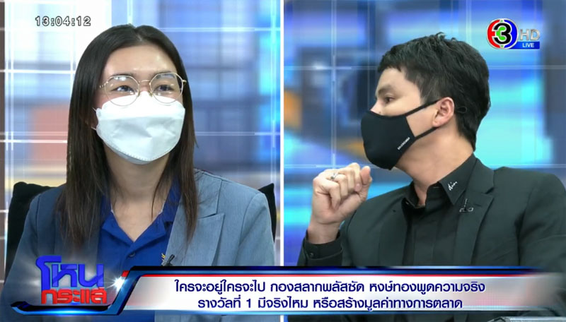 ในโหนกระแสวันนี้ (3 ม.ค.2566) ที่ดำเนินรายการโดย หนุ่ม กรรชัย กำเนิดพลอย ซึ่งมีแขกรับเชิญ วี หงษ์ทองหรือ ฐิตาภา ธนทรัพย์ปรีชา พร้อมด้วยทนายส่วนตัว และ นอท กองสลากพลัส หรือ พันธ์ธวัช นาควิสุทธิ์ มาชี้แจงถึงประเด็นการจัดฉากถูกรางวัลที่ 1