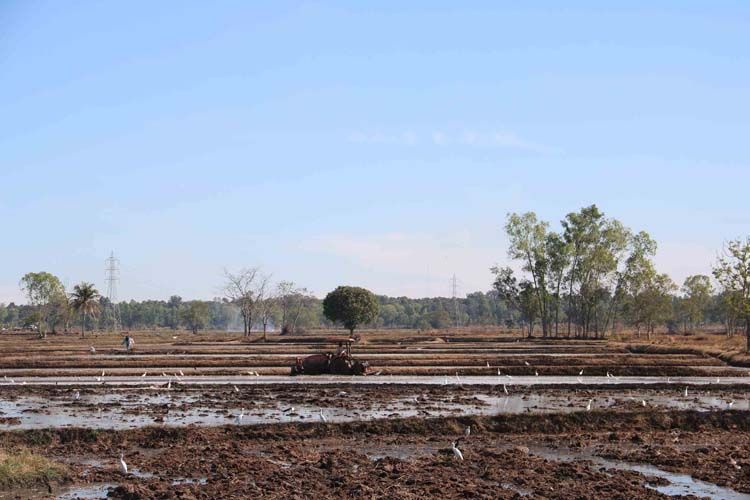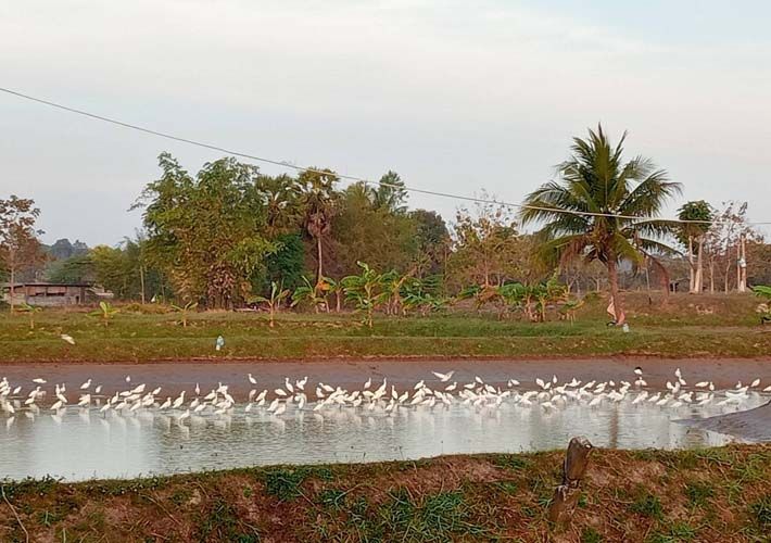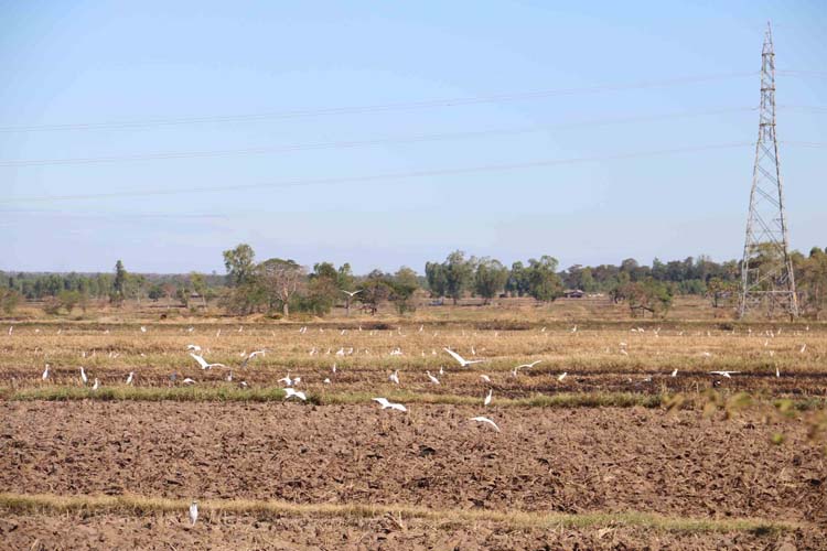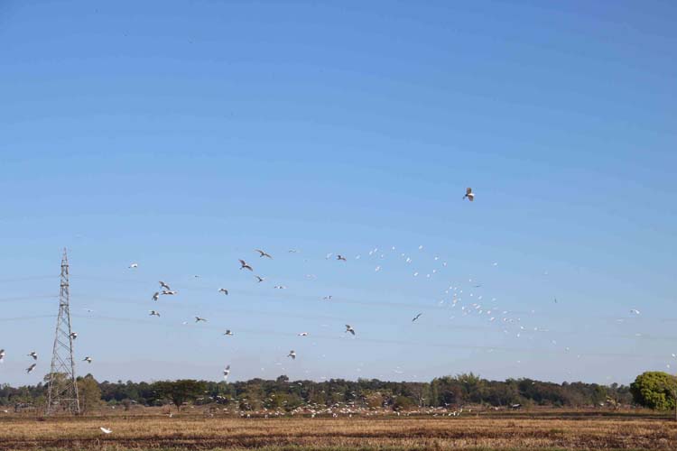ชาวนาในพื้นที่ใช้น้ำชลประทาน โครงการส่งน้ำและบำรุงรักษาลำปาว อำเภอยางตลาด จังหวัดกาฬสินธุ์ เริ่มลงมือปรับพื้นที่เพื่อทำนาปรัง ขณะที่มีฝูงกระยางนาจากต่างถิ่นนับพันตัว อพยพหน้าหนาวมาปักหลักจิกกินหอยและแมลงศัตรูข้าวเป็นอาหาร เป็นภาพที่สร้างสีสันสวยงามเต็มท้องทุ่ง