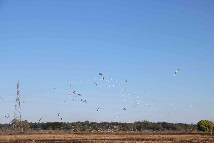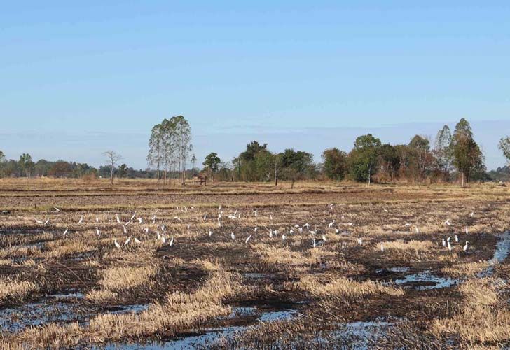 ชาวบ้านพบ ‘ฝูงนกกระยาง’ อพยพหน้าหนาวปักหลักหากินเต็มท้องนา