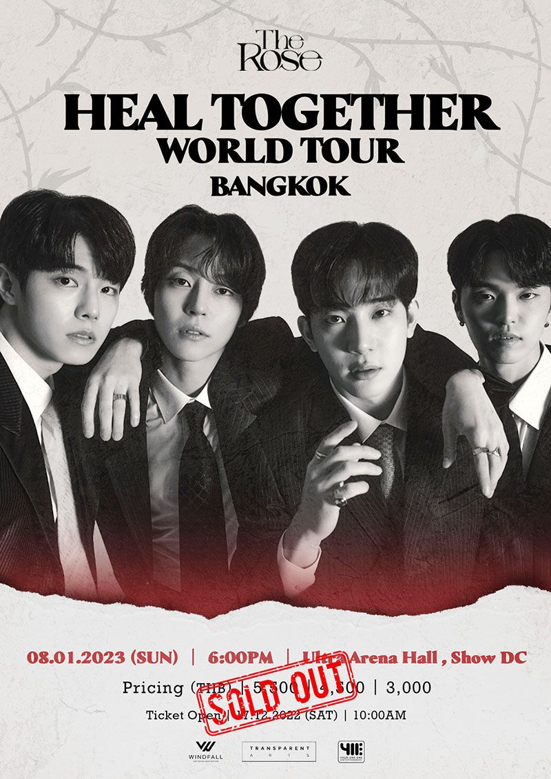 โดย วันอาทิตย์ที่ 8 มกราคม 2566 นี้ เวลา 18.00 น. ณ อัลตร้า อารีน่า ฮอลล์ ชั้น 6 ศูนย์การค้า SHOW DC จะเป็นคิวของศิลปินดนตรีแนวป๊อปอินดี้เกาหลีดีกรีอินเตอร์ ซึ่งล่าสุดมีตารางเวิลด์ทัวร์ 40 คอนเสิร์ตทั่วโลก และทำสถิติ SOLD OUT ทุกประเทศ (ยกเว้น 3 แห่งที่กำลังเปิดจำหน่ายบัตรคือ ไต้หวัน เกาหลีใต้ และสวีเดน) พวกเขาคือวง “เดอะ โรส” (The Rose) ที่ประกอบด้วยสมาชิกสี่คน ได้แก่ คิมอูซอง (KIM WOO SUNG) หรือ แซม นักร้องนำ/กีตาร์/หัวหน้าวง, พัคโดจุน (PARK DO JOON) ร้องนำ/คีย์บอร์ด/กีตาร์, อีฮาจุน (LEE HA JOON) กลอง และ อีแจฮยอง (LEE JAE HYEONG) เบส กับคอนเสิร์ตครั้งแรกในประเทศไทยของพวกเขา เหล่าแบล็กโรส (Black Rose ชื่อเรียกกลุ่มแฟนคลับ) ชาวไทยจึงตื่นเต้นและตั้งตารอคอยการมาไทยของหนุ่มๆ เดอะ โรส ทั้งสี่คนใน “เดอะ โรส [ฮีล ทูเกเธอร์] เวิลด์ ทัวร์อิน แบงคอก” (The Rose [HEAL TOGETHER] WORLD TOUR IN BANGKOK) กันเป็นพิเศษ