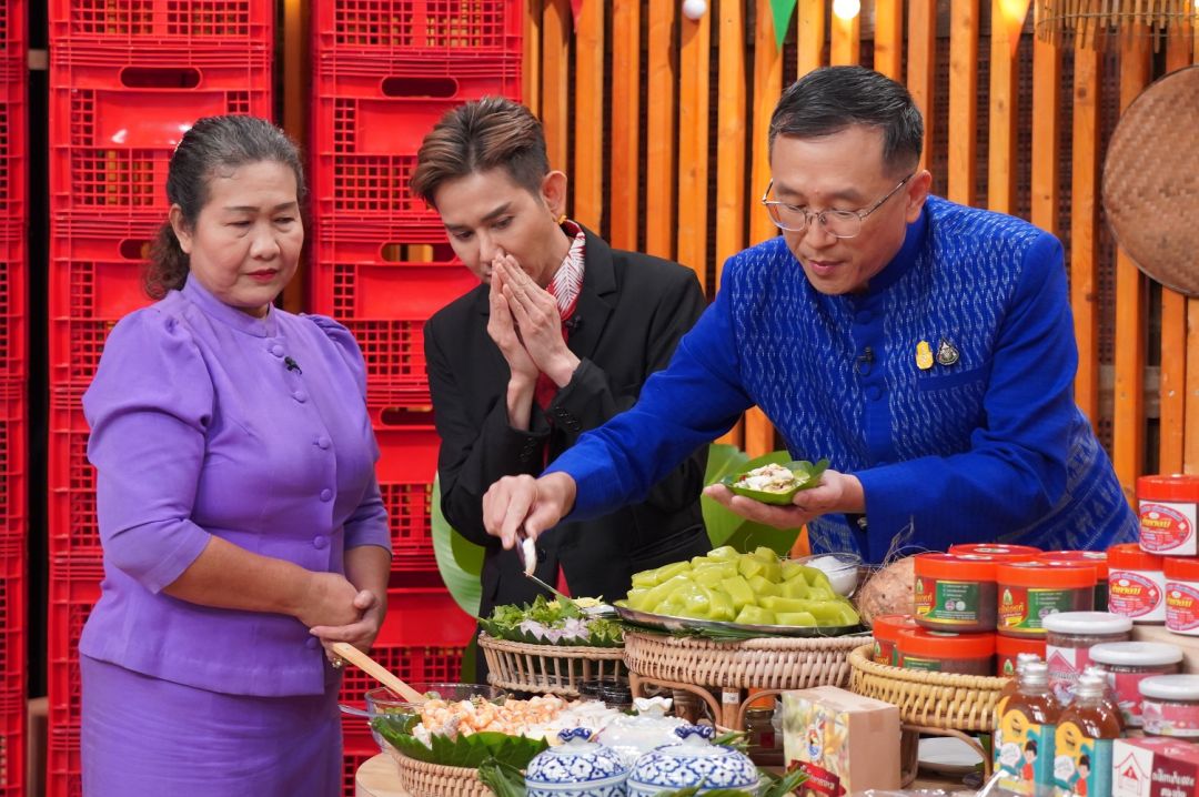โดยบรรยากาศภายในรายการเต็มเปี่ยมไปด้วยเสียงหัวเราะ อารมณ์ดีของหนุ่มเอ สาวแป้ง ที่พร้อมเอนเตอร์เทนพ่อเมืองคุณชำนาญวิทย์ เตรัตน์ ผู้ว่าราชการจังหวัดตราด และคณะที่มาร่วมพูดคุย แชร์ความสุขของอาหาร และของฝากที่ขึ้นชื่อว่าเป็นของดีประจำจังหวัดตราด โดยมีทั้งกะปิรสเลิศ ราคาโดนใจ กุ้งแห้งที่สดอร่อย ขายดีจนสร้างรายได้หลักแสน ด้านอาหารสายบำรุงอย่างรังนกแท้ ก็ไม่น้อยหน้า ทั้งสด ทั้งหอมอร่อยชวนน้ำลายสอ แป้งท้าวยายม่อมที่การันตีเป็นสินค้า OTOP น้ำมันเหลือง น้ำมันสูตรโบราณแก้ปวดเมื่อยก็ดีสุดๆไม่แพ้กัน น้ำมันหอมระเหยจากไม้กฤษฎา ที่สรรพคุณชั้นดีบำรุงทั้งหัวใจตับ และปอด ปิดท้ายด้วยของไฮไลต์อย่าง งอบน้ำเชี่ยวหัตถกรรมพื้นบ้านชื่อดังของจังหวัดตราด ที่สืบทอดมาตั้งแต่ยุคโบราณ ตบท้ายด้วยเครื่องเซรามิก รูปลักษณ์น่ารัก สีสันสดใส เหมาะเป็นของฝากที่ระลึก สุดเลิศ สุดใจแถมเป็นโครงการส่งเสริมอาชีพให้แก่ผู้พิการ เพื่อที่จะทำให้ผู้พิการได้มีอาชีพสร้างรายได้ในอนาคตแบบนี้ไม่อุดหนุนไม่ได้ ใครเห็นต้องขอเหมากับบ้านแน่นอน เรียกว่าไปที่เดียวอิ่มทั้งท้อง อิ่มทั้งใจ