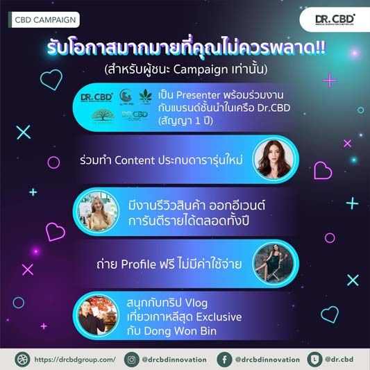 - รอบ Final 3 คนสุดท้าย : อันดับ 2,3 เงินรางวัลมูลค่า 10,000 บาท และ Voucher Dr.CBD Clinic มูลค่า 10,000 บาท