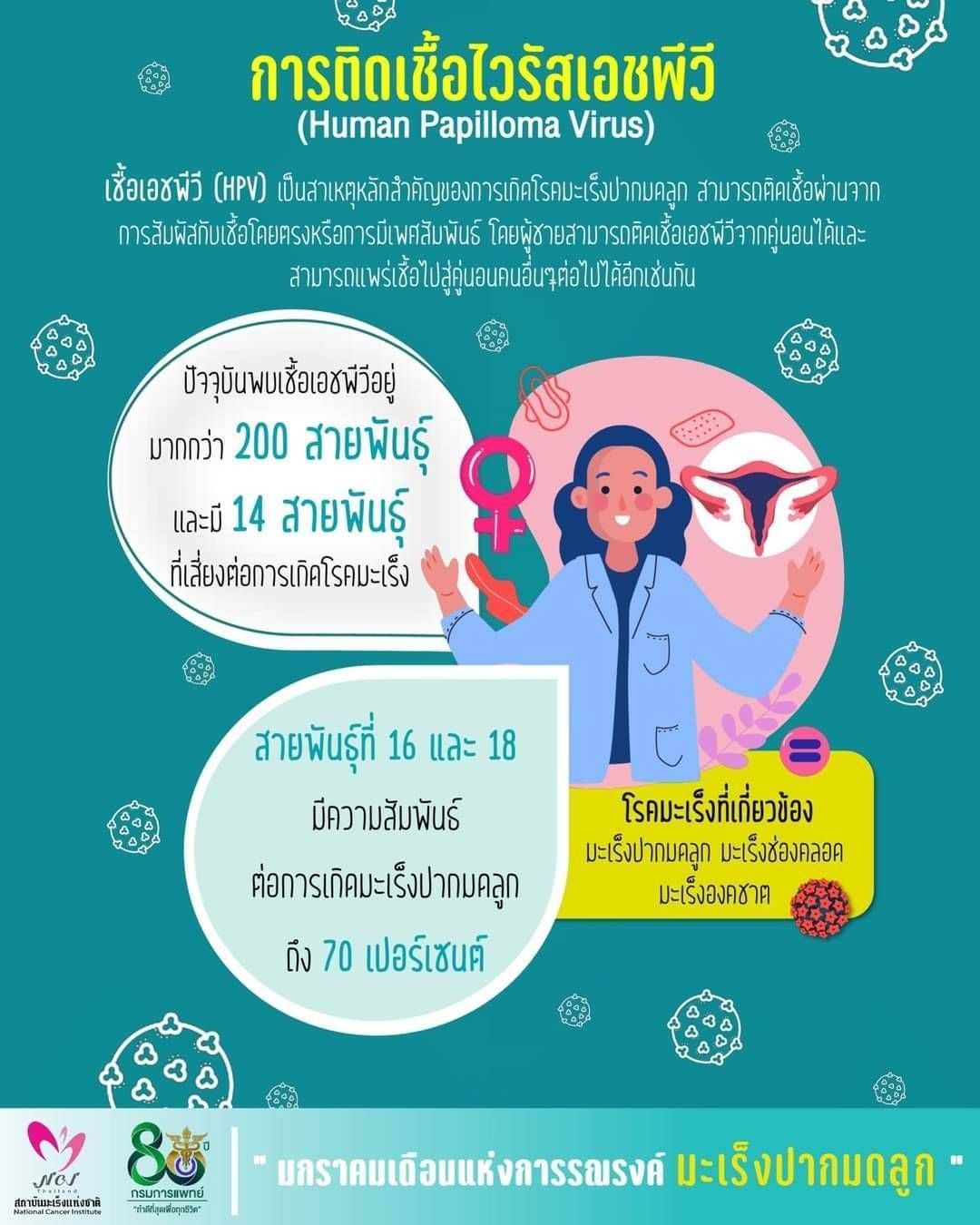 สถาบันมะเร็งแห่งชาติ กรมการแพทย์ ขอเชิญชวนประชาชนร่วมรณรงค์ต้านภัยมะเร็งปากมดลูก แนะนำหลีกเลี่ยงปัจจัยเสี่ยงของการเกิดโรค ตรวจคัดกรองมะเร็งปากมดลูกเป็นประจำ และฉีดวัคซีนป้องกันการติดเชื้อ HPV