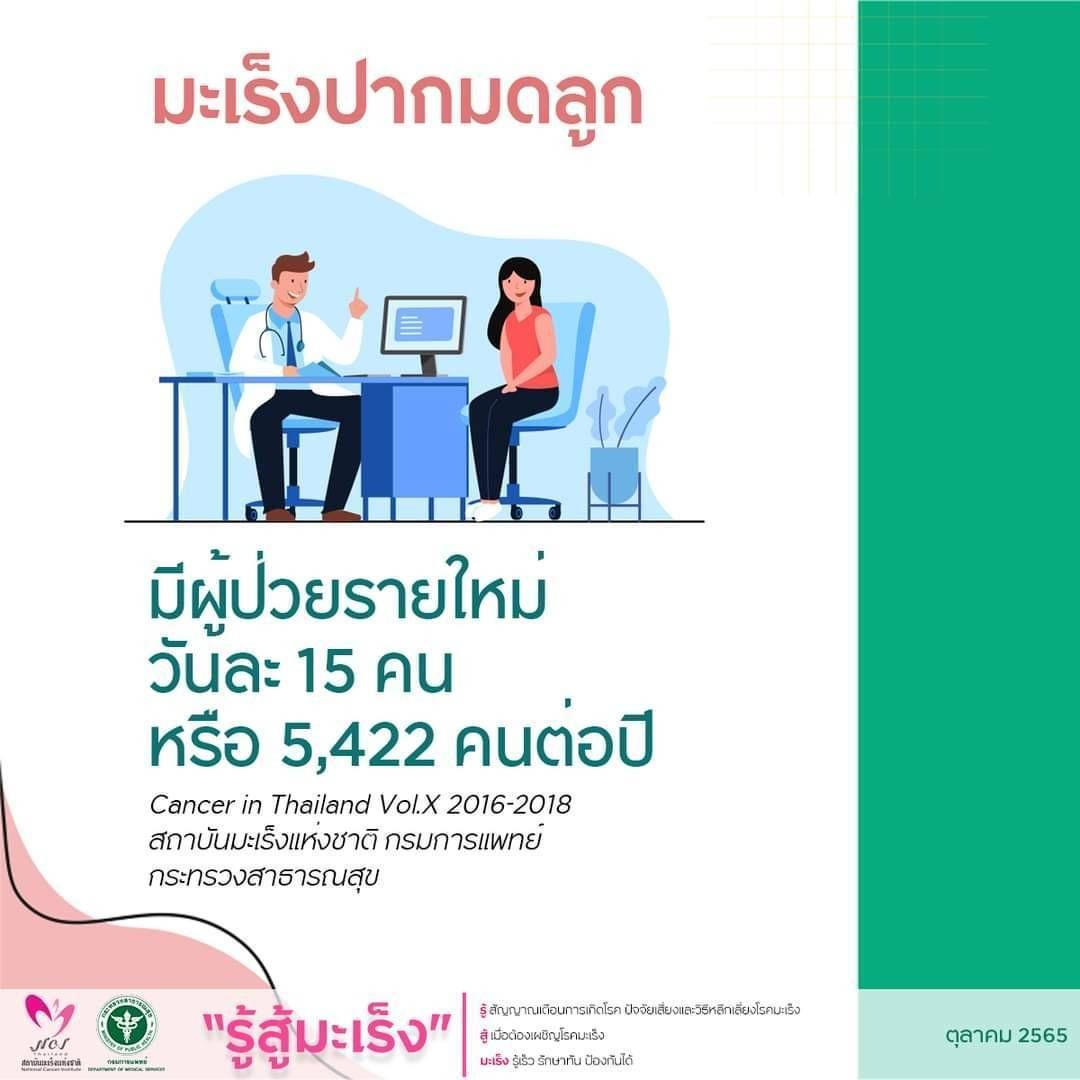 นายแพทย์วีรวุฒิ อิ่มสำราญ รองอธิบดีกรมการแพทย์ กล่าวว่า มะเร็งปากมดลูกถือเป็นปัญหาสาธารณสุขที่สำคัญของประเทศไทยมาตั้งแต่ปี 2532 ซึ่งพบอุบัติการณ์การเกิดมะเร็งปากมดลูกสูงเป็นอันดับหนึ่งในผู้หญิงไทย จากนั้นมีการผลักดันนโยบายการคัดกรองมะเร็งปากมดลูกระดับประเทศขึ้นทำให้อุบัติการณ์มะเร็งปากมดลูกมีแนวโน้มลดลงอย่างต่อเนื่องโดยปัจจุบันมะเร็งปากมดลูกจัดอยู่ในอันดับ 5 ของมะเร็งที่พบบ่อยในผู้หญิงไทย มีผู้ป่วยรายใหม่เฉลี่ยวันละ 15 ราย หรือ 5,422 คนต่อปี (Cancer in Thailand Vol.X 2016-2018 สถาบันมะเร็งแห่งชาติ กรมการแพทย์ กระทรวงสาธารณสุข) และเสียชีวิตเฉลี่ย วันละ 6 ราย หรือ 2,238 คนต่อปี (สถิติสาธารณสุข พ.ศ.2562 กองยุทธศาสตร์และแผนงาน สำนักงานปลัดกระทรวงสาธารณสุข)