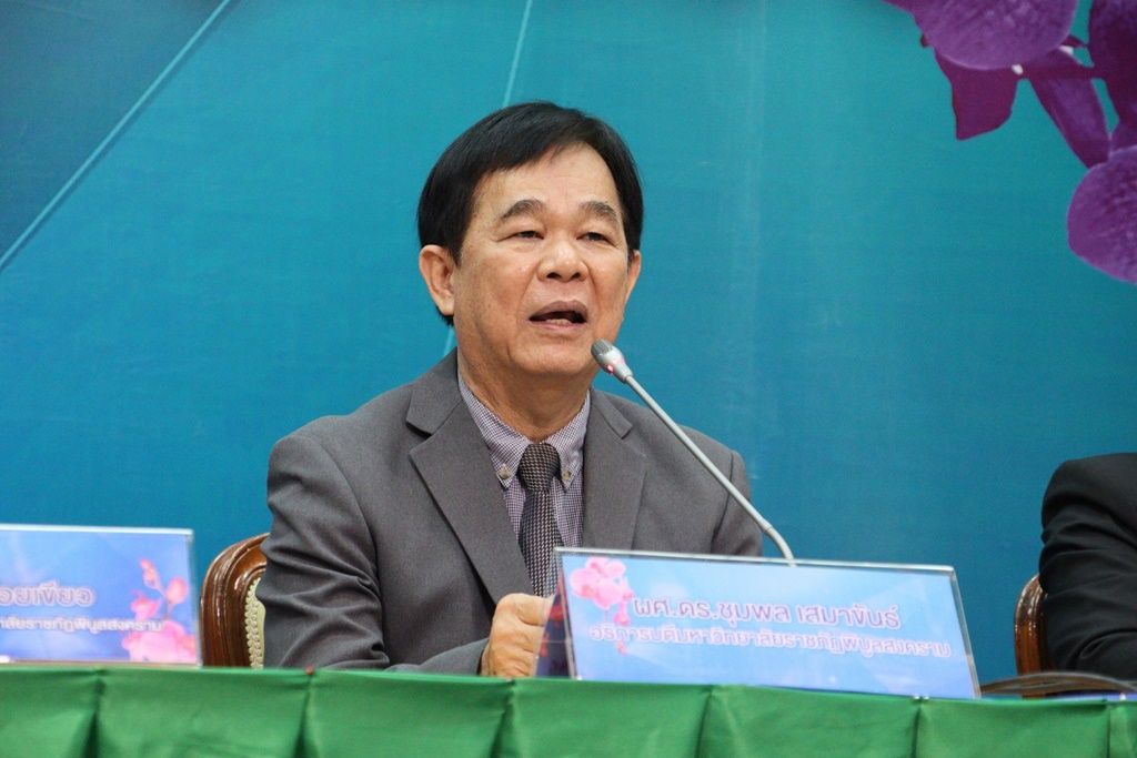 วันที่ 11 ม.ค.66 ที่มหาวิทยาลัยราชภัฏพิบูลสงคราม ส่วนทะเลแก้ว ผศ.ดร.ชุมพล เสมาขันธ์ อธิการบดีมหาวิทยาลัยราชภัฎพิบูลสงคราม รศ.ดร.โชติ บดีรัฐ รองอธิการบดีฝ่ายกิจการพิเศษ นายวิรัช ทับทองหลาง ประธานเครือข่ายวิสาหกิจชุมชนพันธุ์พืชและกล้วยไม้ พร้อมด้วยเจ้าหน้าที่ ที่เกี่ยวข้องได้ร่วมกันแถลงข่าวการเตรียมความพร้อมในการจัดงาน เกษตรแฟร์ “ศึกช้างชนช้าง” โดยภายในงานจะมีไฮไลน์ที่น่าสนใจคืองานประกวดกล้วยไม้ที่ใหญ่ที่สุด ชิงถ้วยประทานพระเจ้าววรวงศ์เธอพระองค์เจ้าสิริภาจุฑาภรณ์ เพื่อเผยแพร่ผลงานวิจัยและนวัตกรรมของมหาวิทยาลัยออกสู่สังคม เปิดการเรียนรู้ให้กับนักศึกษา บุคลากร และอาจารย์ โดยใช้งานเกษตรแฟร์ “ศึกช้างชนช้าง” เป็นห้องปฏิบัติการภาคสนามเพื่อถ่ายทอดความรู้ทุกมิติจากห้องเรียน อีกทั้งยังเป็นช่องทางในการช่วยเหลือเกษตรกร ผู้ประกอบการให้มีรายได้จากการจำหน่ายผลิตผลทางการเกษตร ทำให้เกิดเศรษฐกิจหมุนเวียนกลับไปสู่ชุมชนและสังคม สร้างความสุขให้กับครอบครัว เพื่อสร้างความมั่นคงให้กับประเทศชาติ และเพื่อกระตุ้นให้มีการปลููกเลี้ยงกล้วยไม้ ขยายพันธุ์กล้วยไม้ เป็นศูนย์การพัฒนาพันธุ์และเป็นศูนย์กางเศรษฐกิจการค้ากล้วยไม้ โดยงานมีกำหนดจัดขึ้นระหว่างวันที่ 13-19 กุมภาพันธ์ 2566
