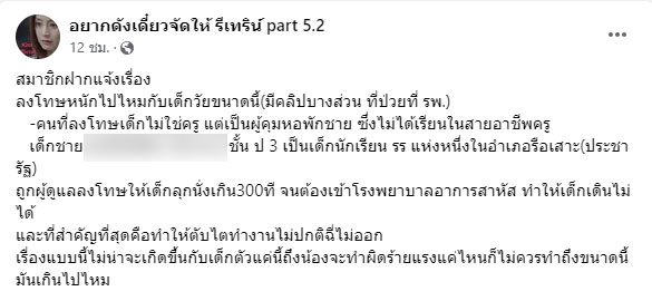 24 ม.ค. 66 เพจเฟซบุ๊ก อยากดังเดี๋ยวจัดให้ รีเทริน์ part 5.2 โพสต์ภาพเด็กชาย นักเรียนชั้นป.3 ขณะกำลังรักษาตัวอยู่ที่โรงพยาบาล หลังจากได้รับบาดเจ็บจากการถูกลงโทษ พร้อมระบุว่า สมาชิกฝากแจ้งเรื่องลงโทษหนักไปไหมกับเด็กวัยขนาดนี้ เด็กชาย ชั้น ป.3 เป็นเด็กนักเรียน โรงเรียนแห่งหนึ่ง ในอำเภอรือเสาะ จังหวัดนราธิวาส