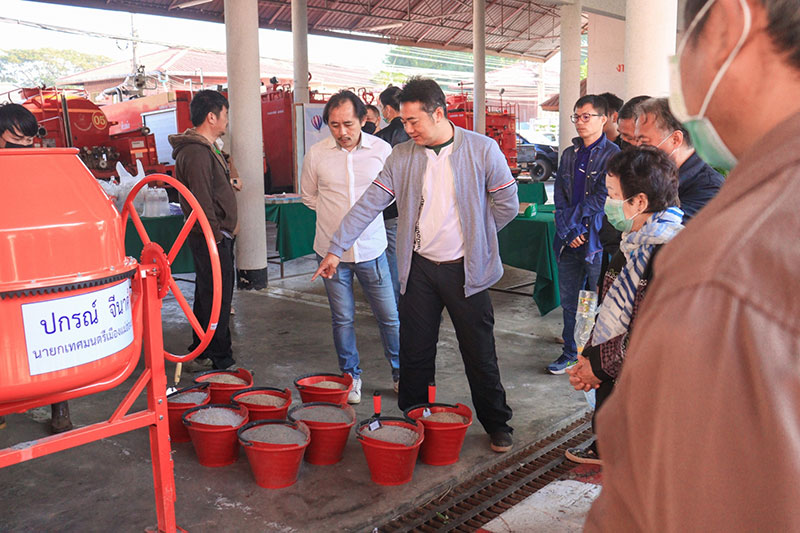 ร่วมเข้าชมการสาธิตทำผลิตภัณฑ์จากขยะพลาสติก เพื่อทำบล็อกปูพื้น และการจัดทำหิน ทราย คลุกพลาสติกเหลว เพื่อใช้ซ่อมแซมถนน พร้อมทั้งนำไปปรับใช้และพัฒนาในการบริหารจัดการขยะ และสร้างประโยชน์แก่ชุมชน