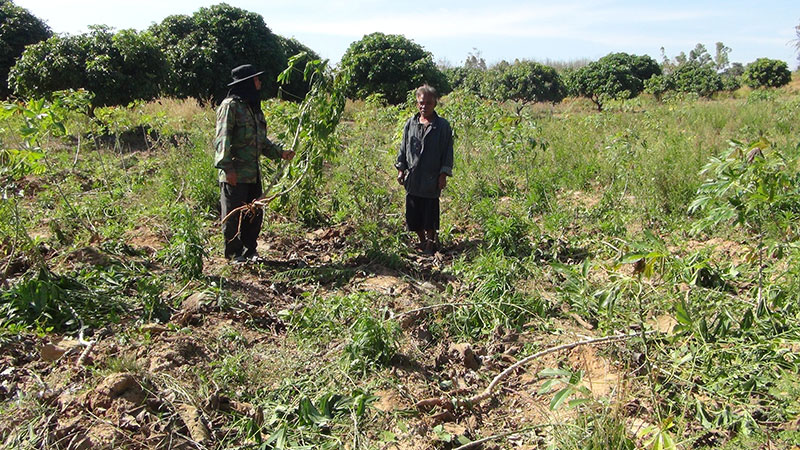ด้าน นายไพโรจน์ มีศิลป์ อายุ 53 ปี เกษตรกรที่ได้รับความเดือดร้อนอีกราย บอกว่า ตนเองปลูกพืชหลายอย่าง แต่หลักๆคือมันสำปะหลังเพื่อไว้ขายเลี้ยงครอบครัว แต่ถูกช้างป่าบุกเข้ามาทำลายเสียหายทุกปี ไม่ต่างจากปีนี้มันอายุได้ 8 เดือนใกล้เก็บผลผลิตแล้วก็ถูกช้างทำลายเสียหายไปจำนวนมากคิดเป็นมูลค่าก็ไม่ต่ำกว่า 2 หมื่นบาท ที่ผ่านมาเกษตรกรพยายามช่วยเหลือตัวเองด้วยการจุดประทัดขับไล่ช้างป่า แต่ทุกวันนี้เหมือนช้างป่าเคยชินจะไม่กลัวเสียงดัง