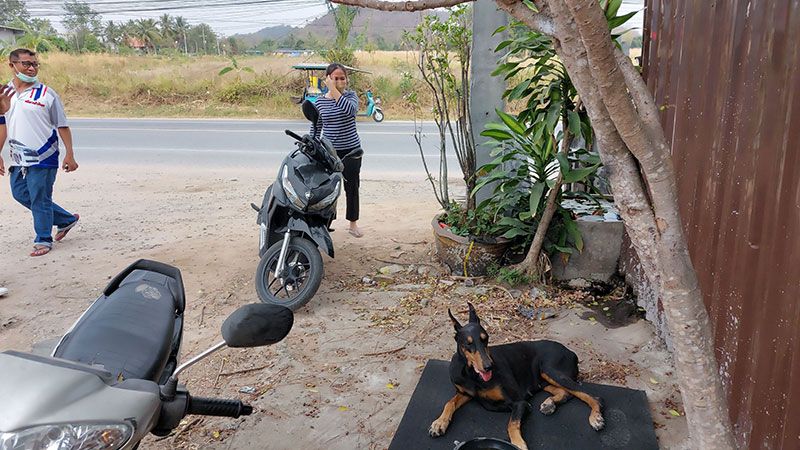 โดยชาวบ้านไม่มีใครกล้าเข้าไปช่วยเหลือ เนื่องจากกลัวว่าจะถูกกัดเพราะเป็นสายพันธุ์ที่ดุ จึงทำได้เพียงนำน้ำและอาหารมาวางไว้ให้ นอกจากนี้ยังพบว่า สุนัขตัวดังกล่าวน่าจะมีท้องอีกด้วย