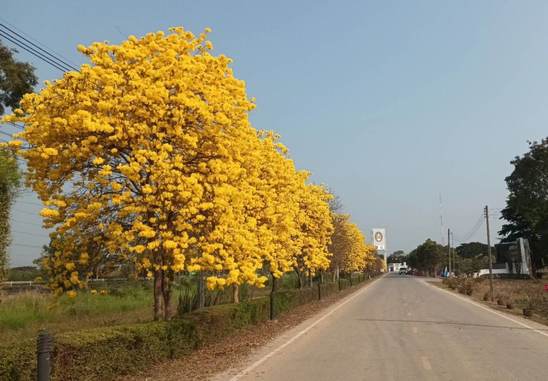 สวยจริงๆ ดอกเหลืองเชียงราย คล้ายกับดอกปรีดียาธร เริ่มออกดอกบานสะพรั่งเหลืองอร่ามงดงามที่มหาวิทยาลัยราชภัฏพิบูลสงคราม จังหวัดพิษณุโลก