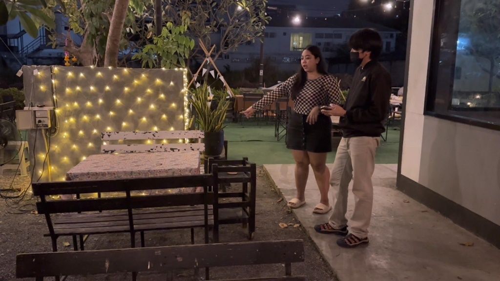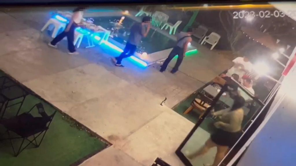 ภาพจากกล้องวงจรปิดวันที่ 3 กุมภาพันธ์ 2566 เวลาประมาณ 20.20 น.บันทึกภาพ พ่อแม่ลูก เดินเข้ามาภายในร้านเดินนั่งโต๊ะที่บริเวณใต้ต้นไม้ ก่อนจะสั่งอาหารมารับประทาน ต่อมาเวลา 21.50 น.มีชายและหญิงวัยรุ่นตามมาสมทบ ต่อมาพ่อกับแม่ได้ให้ทิปกับเด็กเสิร์ฟ เป็นจำนวนเงิน 60 บาท ก่อนจะหอมแก้มลูก แล้วเดินออกไปจากร้าน ส่วนวัยรุ่นอีก 3 คนนั่งทานอาหารก่อนจะเดินไปเข้าห้องน้ำแล้วแยกย้ายกันเดินหลบออกไปข้างร้าน