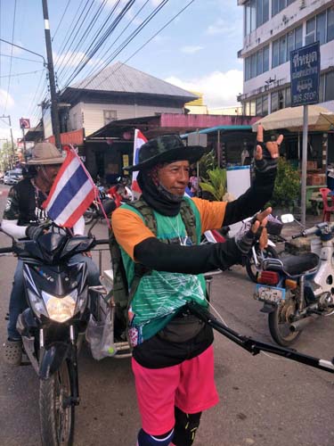 โดยมีบรรดาแฟนคลับและผู้ที่ติดตามความเคลื่อนไหวของนายสุเทพฯ คอยให้กำลังใจ นายสุเทพฯ และขอให้เดินทางถึงจุดหมายปลายทางโดยสวัสดิภาพ ขอให้สมหวังกับคนรักที่รอคอยอยู่ที่ จ.สตูล พร้อมชื่นชมถึงความมุมานะอดทนและความตั้งใจจริงของนายสุเทพฯ จนทำให้สาว ๆ จ.ตรังพากันอิจฉาไปตาม ๆ กัน โดยตลอดสองข้างทางเข้าสู่ตัวเมืองตรัง มีชาวบ้านที่ทราบข่าวนำข้าวปลาอาหาร ผลไม้และน้ำดื่มมามอบให้อย่างต่อเนื่อง โดยนายนิวัฒน์ ท่องวิถี อายุ 50 ปี ว่าที่เพื่อนเจ้าบ่าว ชาว จ.สุราษฎร์ธานี คอยขับรถซาเล้ง บรรทุกสัมภาระตามหลังมาติด ๆ