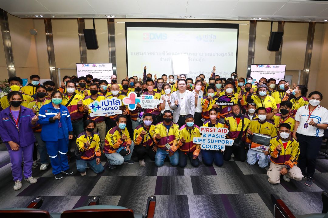 หลังจากประสบความสำเร็จในการให้ความรู้พื้นฐานการช่วยชีวิตแก่ประชาชนทั่วไป กว่า 50,000 คน ในปีที่ผ่านมา ล่าสุด BDMSร่วมกับ เครือโรงพยาบาลพญาไท- เปาโล นำโดยนายแพทย์องค์การ คมสันอายุรแพทย์เฉพาะทางโรคหัวใจและหลอดเลือดโรงพยาบาลเปาโล พหลโยธินส่งต่อองค์ความรู้และทักษะการช่วยชีวิตขั้นพื้นฐาน โดยจัดฝึกอบรมการปฐมพยาบาลเบื้องต้น (Basic Life Support :BLS) และการช่วยชีวิตขั้นพื้นฐาน (CPR) ให้กับ กลุ่มไรเดอร์ Robinhood (โรบินฮู้ด)ซึ่งได้รับเกียรติจาก ดร.พงศ์ศักดิ์ ตฤณธวัช ผู้อำนวยการสถาบันฝึกอบรมโรบินฮู้ด ร่วมเปิดการอบรมฯ ณ อาคารสำนักงานธนาคารไทยพาณิชย์ (SCB) สาขารัชโยธิน โดยการฝึกอบรมในครั้งนี้กลุ่มไรเดอร์จะได้รับความรู้ความเข้าใจในกระบวนการให้ความช่วยชีวิตตั้งแต่ขั้นตอนการแจ้งเหตุการประเมินอาการผู้ป่วยเบื้องหน้าตลอดจนการช่วยเหลือผู้ป่วยที่ประสบภาวะหยุดหายใจและหัวใจหยุดเต้นด้วยการทำCPR หรือ Cardiopulmonary รวมถึงการใช้เครื่องกระตุกหัวใจด้วยไฟฟ้าชนิดอัตโนมัติ (AED) โดยไรเดอร์ที่เข้าร่วมอบรมจะได้รับองค์ความรู้ทั้งภาคทฤษฎีและภาคปฏิบัติกับหุ่นจำลอง พร้อมทักษะที่สามารถนำไปปรับใช้เมื่อเกิดสถานการณ์ฉุกเฉินจริงได้อย่างถูกต้องตามมาตรฐาน เพื่อช่วยผู้ป่วยฉุกเฉินให้ปลอดภัยผ่านวิกฤตก่อนถึงถือแพทย์